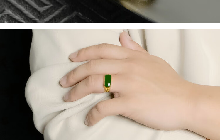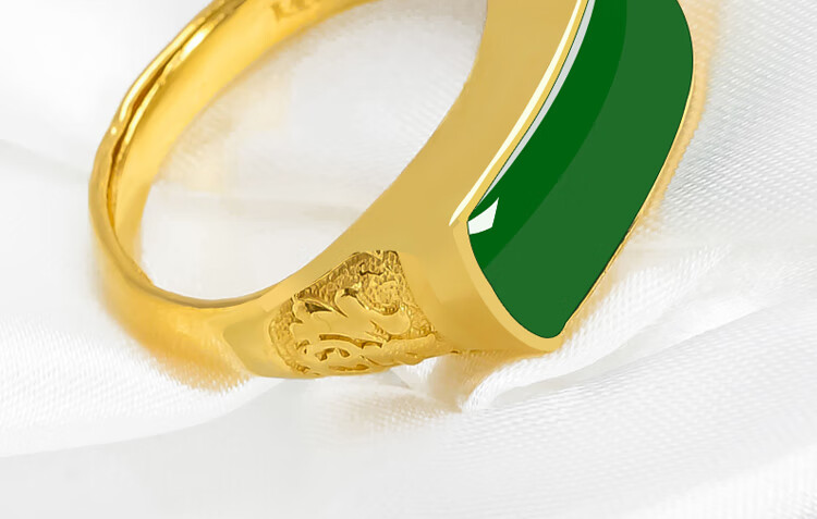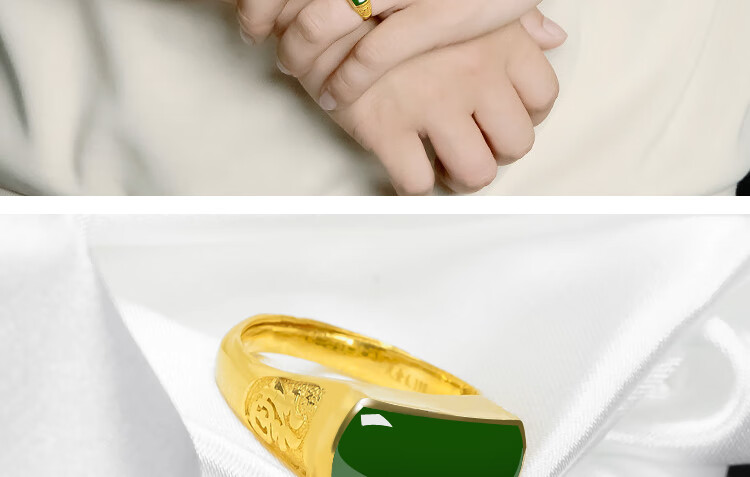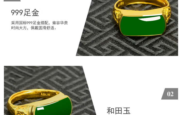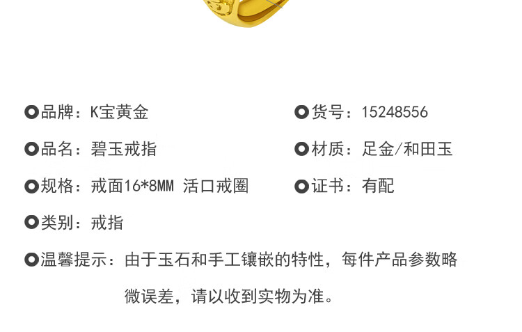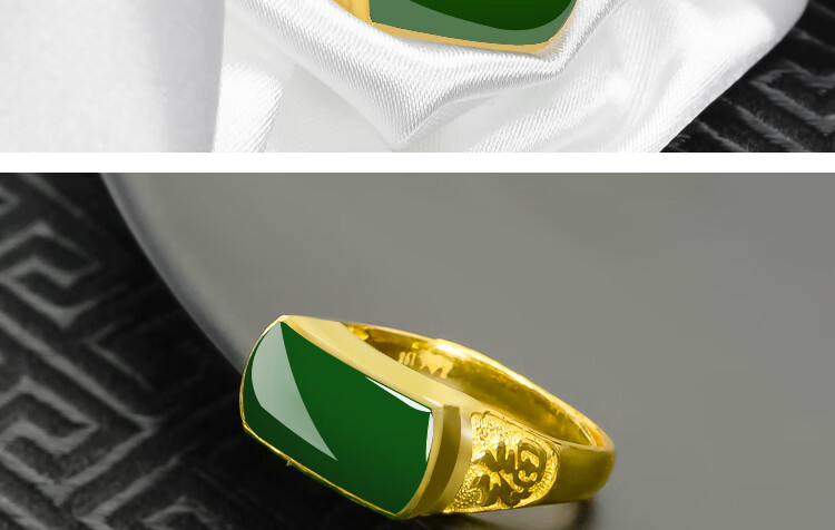 K Bao gold gold ring men's 999 pure gold inlaid Hetian jasper adjustable gold inlaid jade men's ring birthday gift pure gold jasper ring gold weight about 6.8 grams