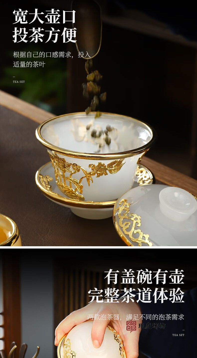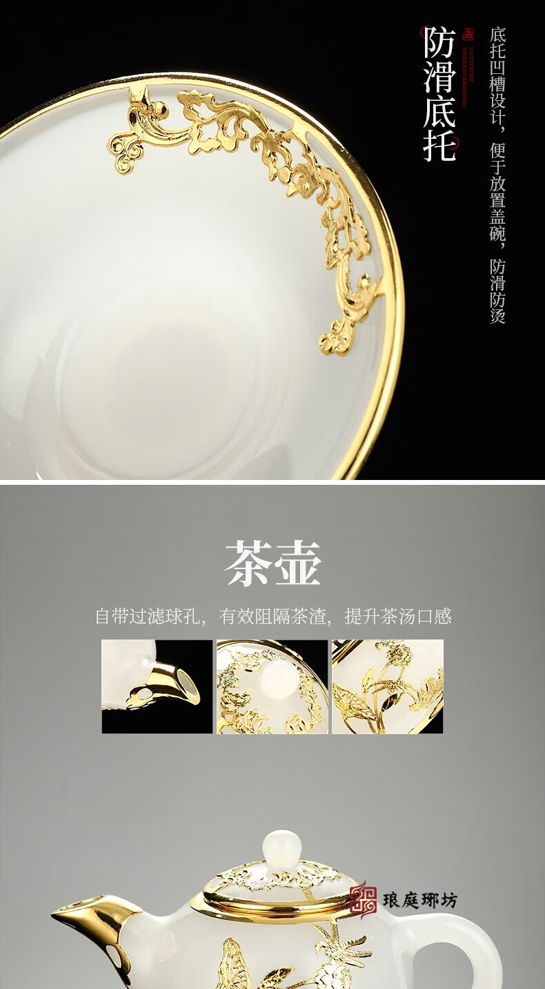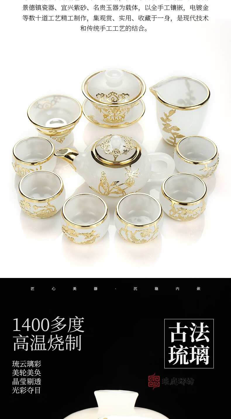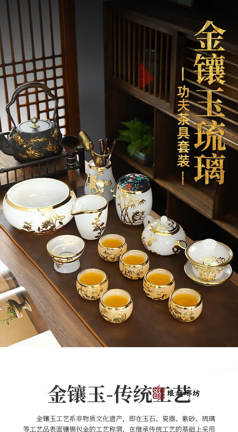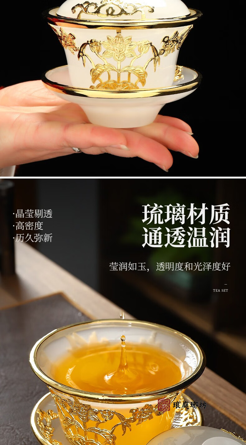 Langting Yafang high-end tea set set, glass pure handmade kung fu tea cup set, home office gift teapot cover bowl, glass set (large set) 14 pieces