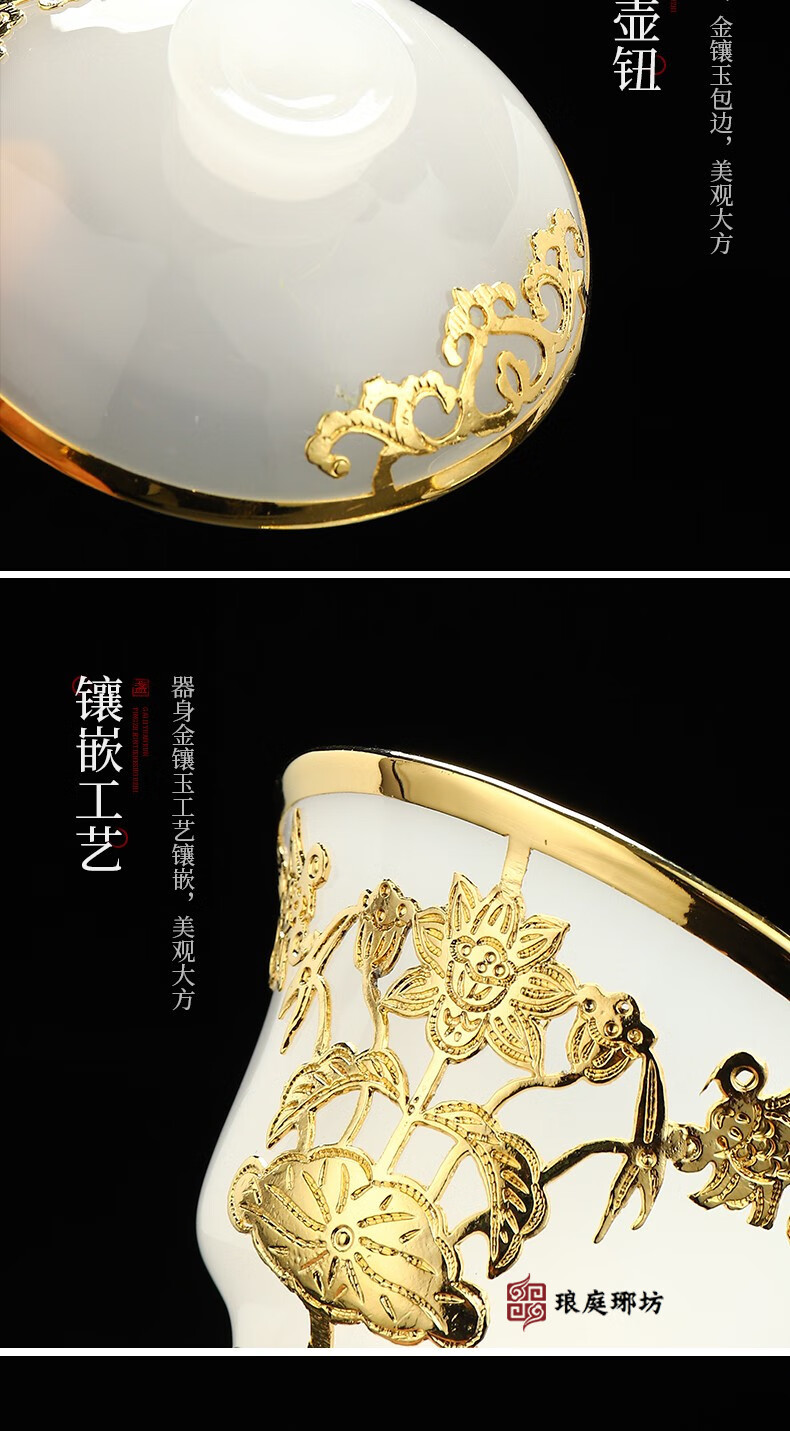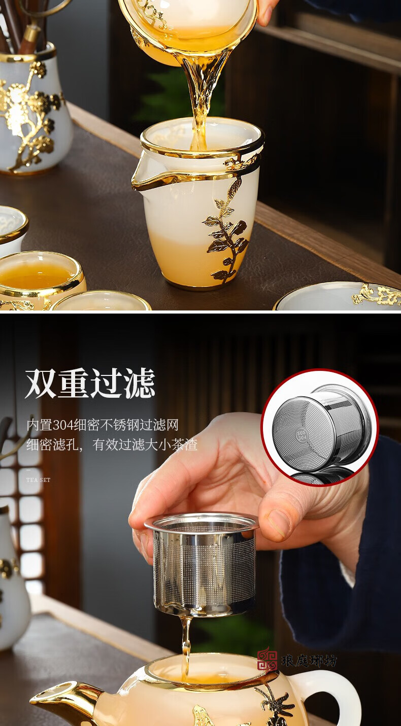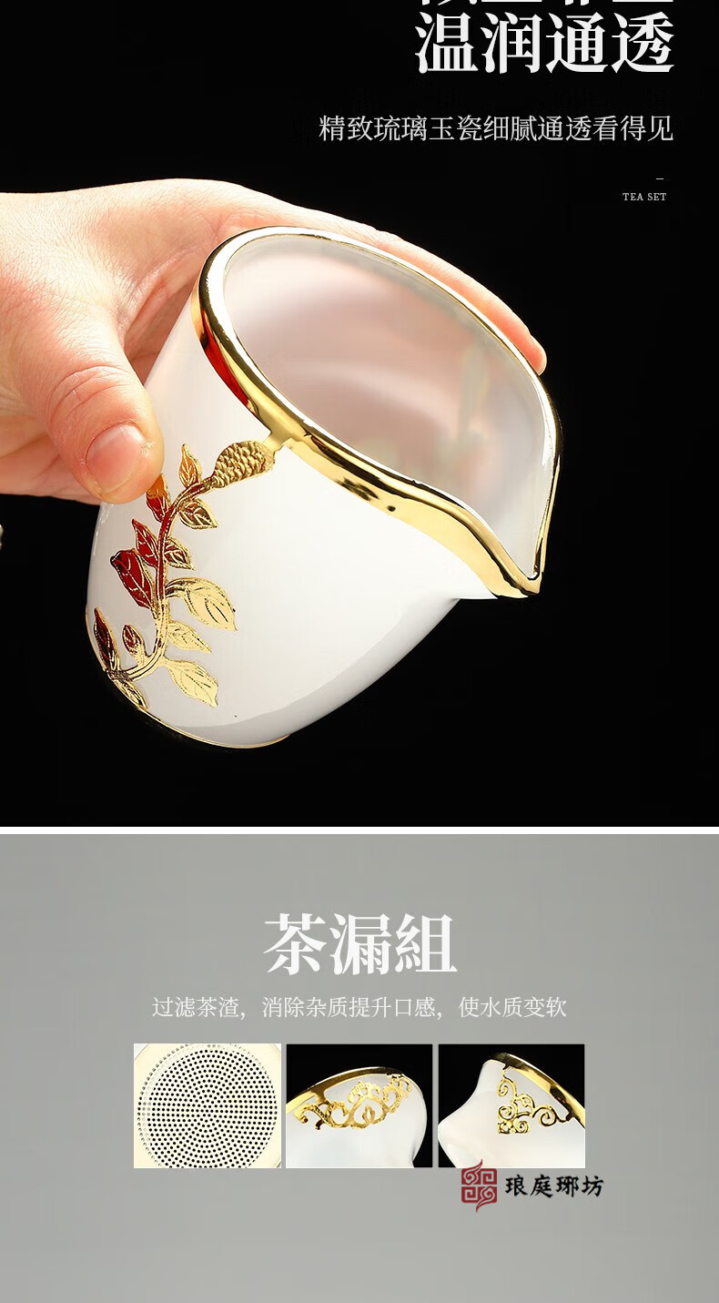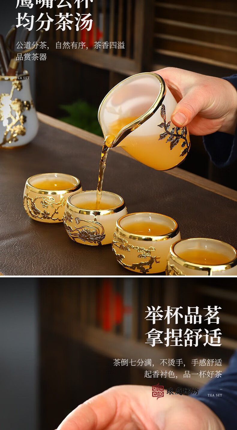 Langting Yafang high-end tea set set, glass pure handmade kung fu tea cup set, home office gift teapot cover bowl, glass set (large set) 14 pieces