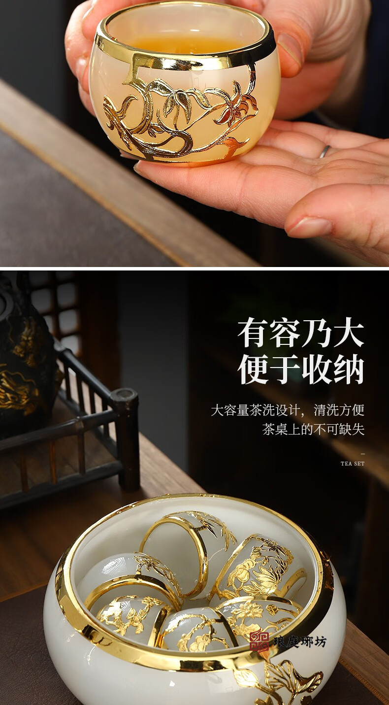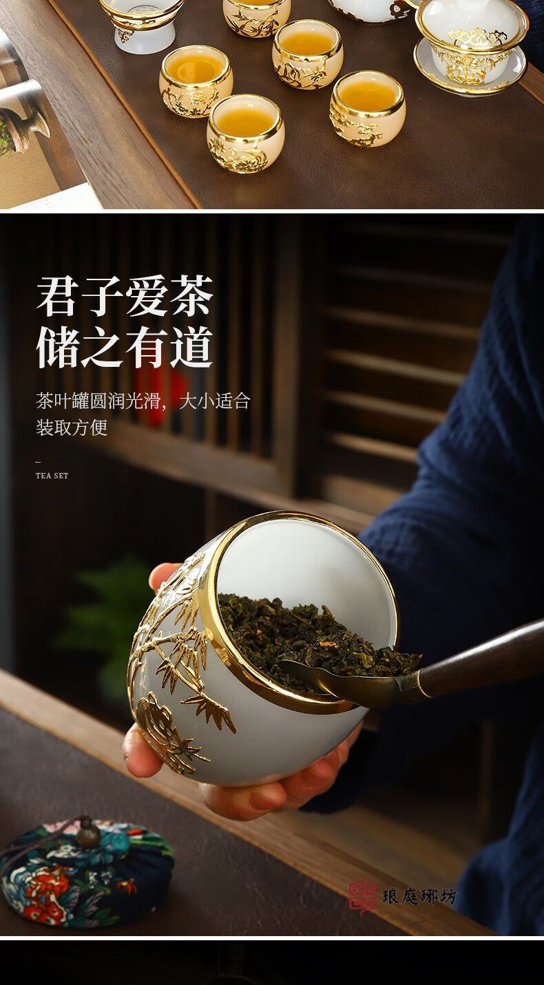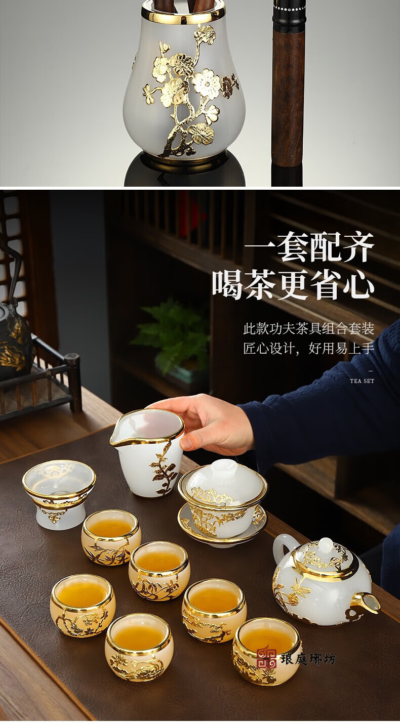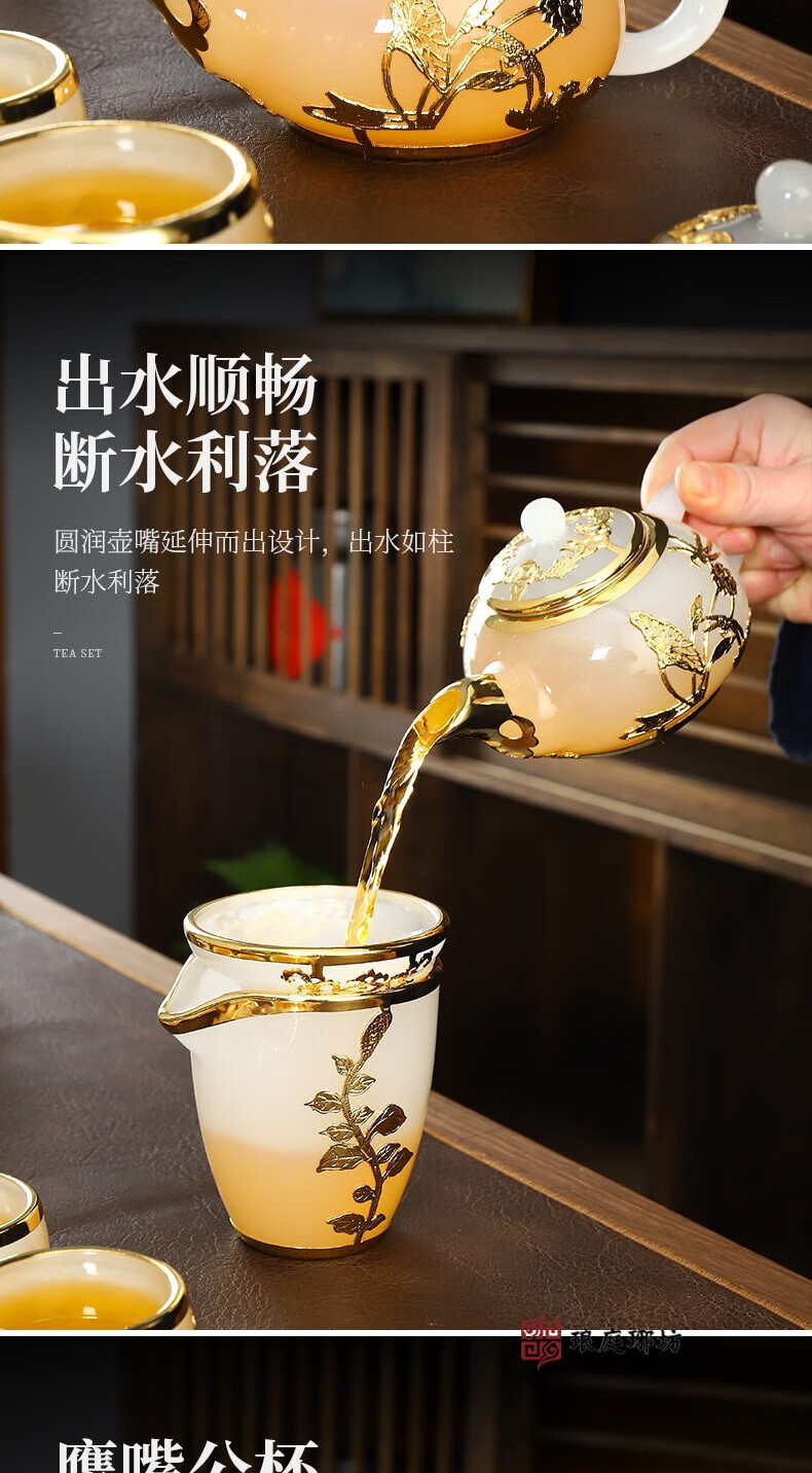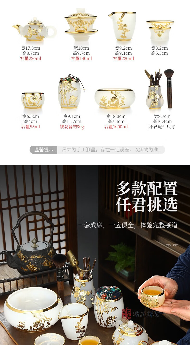 Langting Yafang high-end tea set set, glass pure handmade kung fu tea cup set, home office gift teapot cover bowl, glass set (large set) 14 pieces