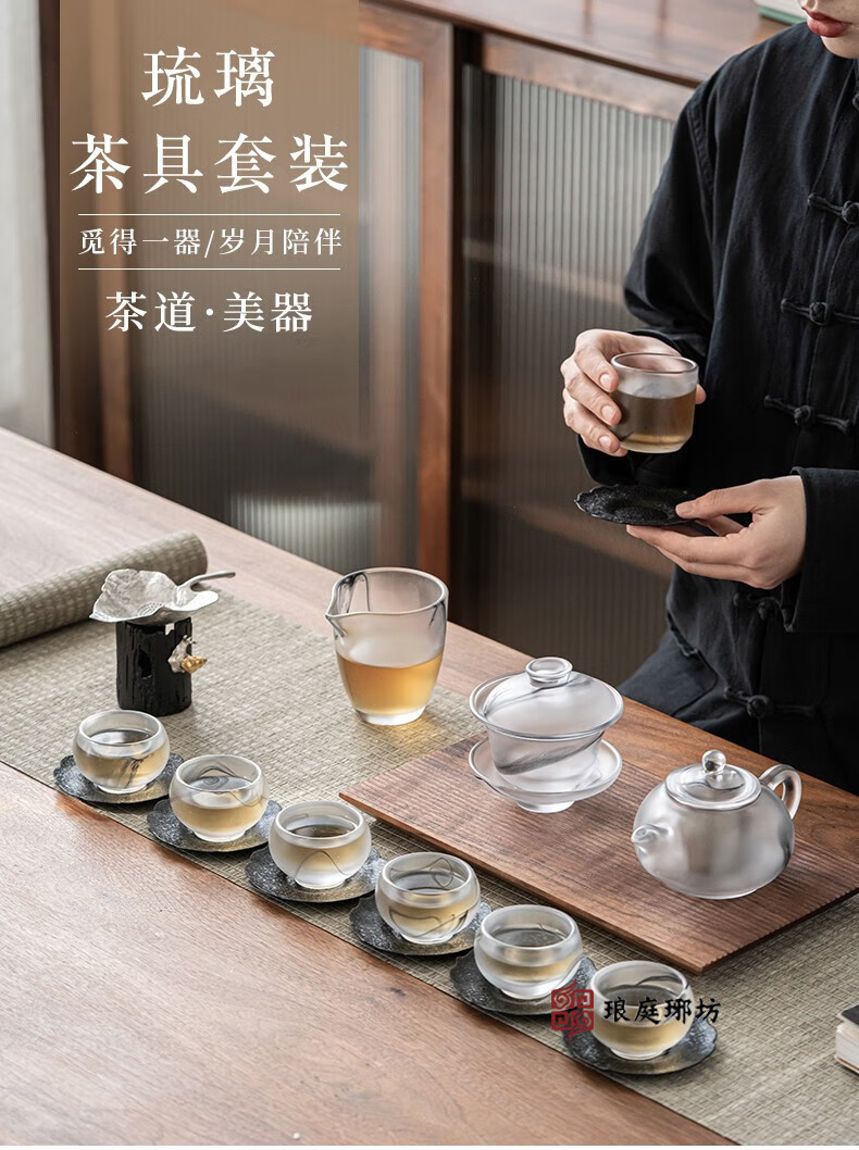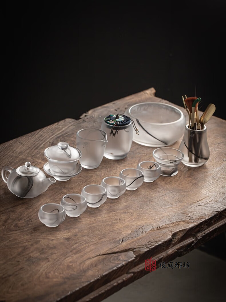 Langting Yafang Chinese high-end gilt silver glazed Kung Fu tea set teapot cover bowl tea sea tea cup home office living room complete tea set gift box ink dyed glazed Kung Fu tea set 15 pieces