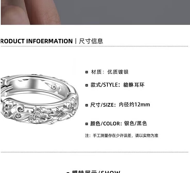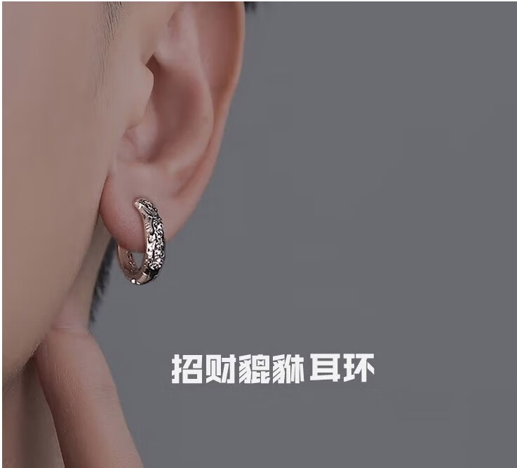Free Talk Pixiu Earrings Men's National Fashion Chinese Style Student Earrings Single Women's Trendy Earrings Internet Celebrity Earrings A Pair for Your Boyfriend Silver Single
