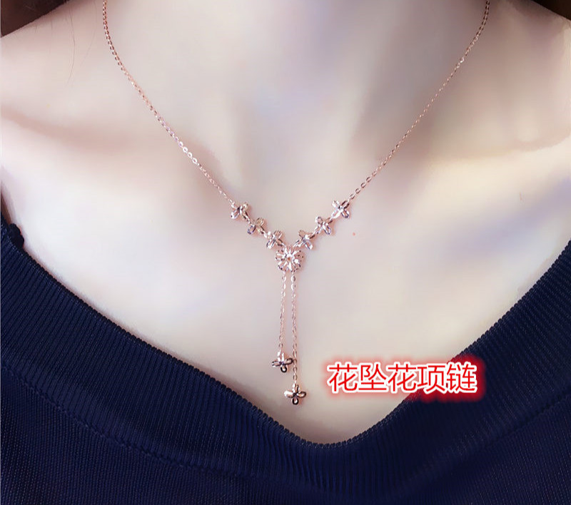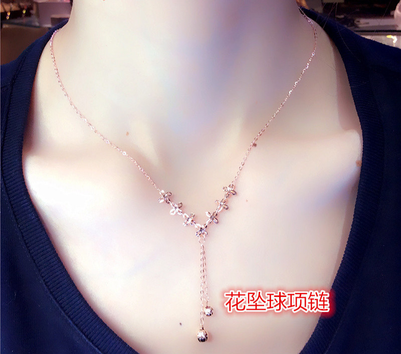 Xiangge Russian 585 Purple Gold Necklace Women's Set Chain 14K Rose Gold Tassel Pendant Necklace Birthday Chinese Valentine's Day Gift Girlfriend Flower Pendant Ball Necklace