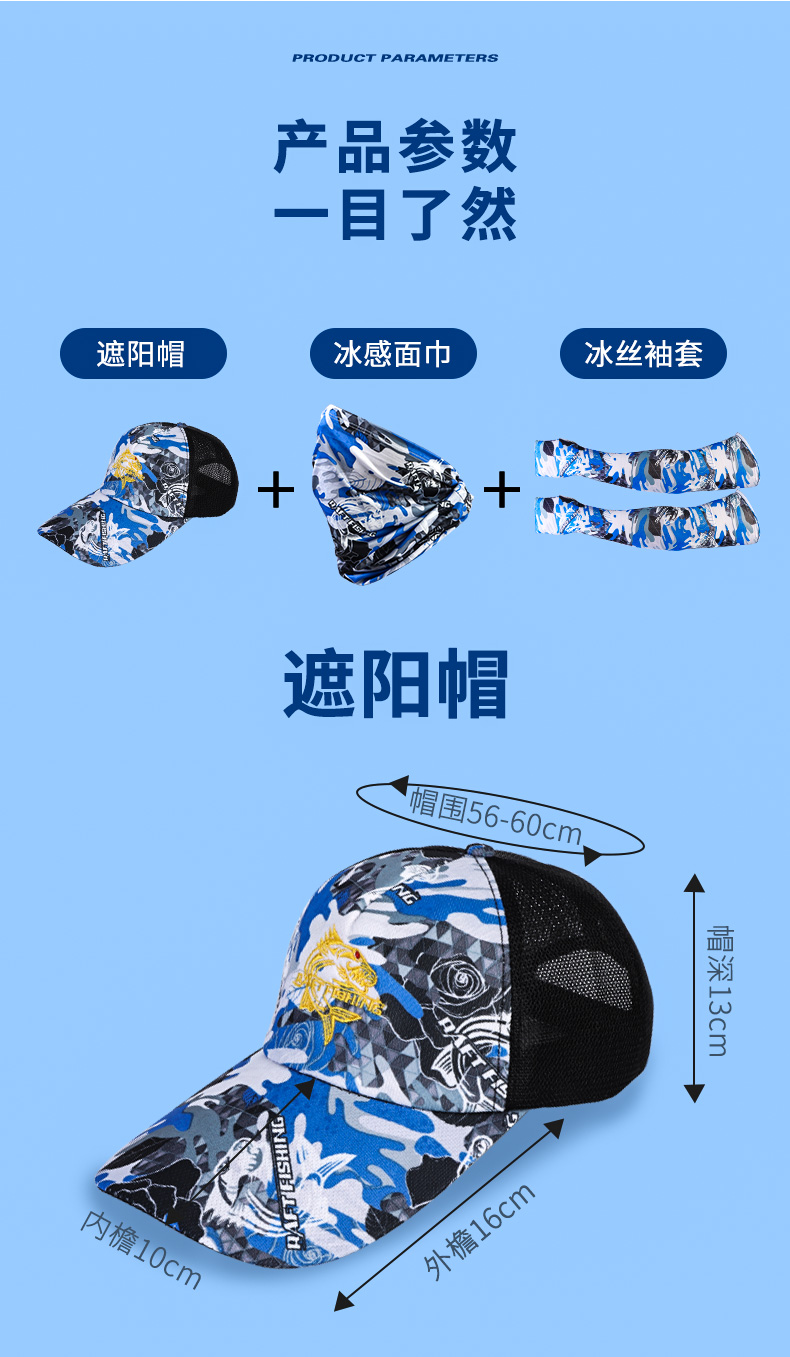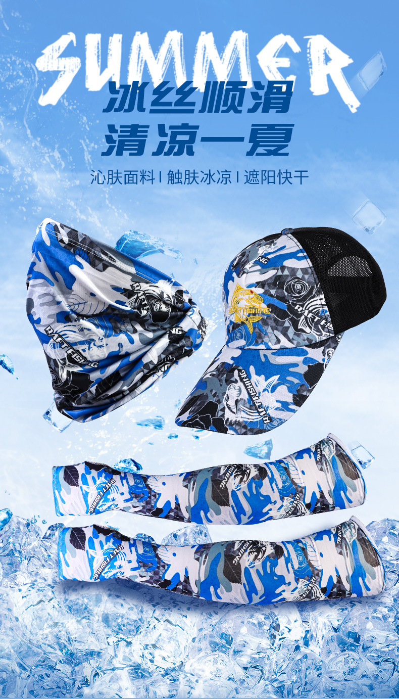 Bear Fire Fishing Hat Men's Fishing Equipment Complete Set Three-piece Ice Silk Protective Mask Set Luya Hat Summer Sun Protection Three-piece Set Blue