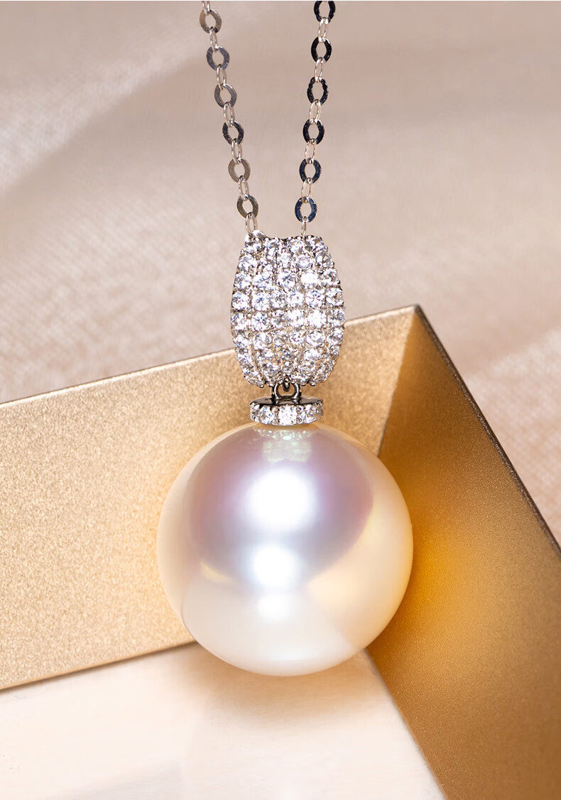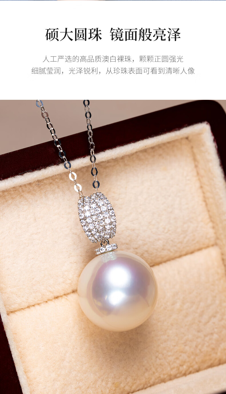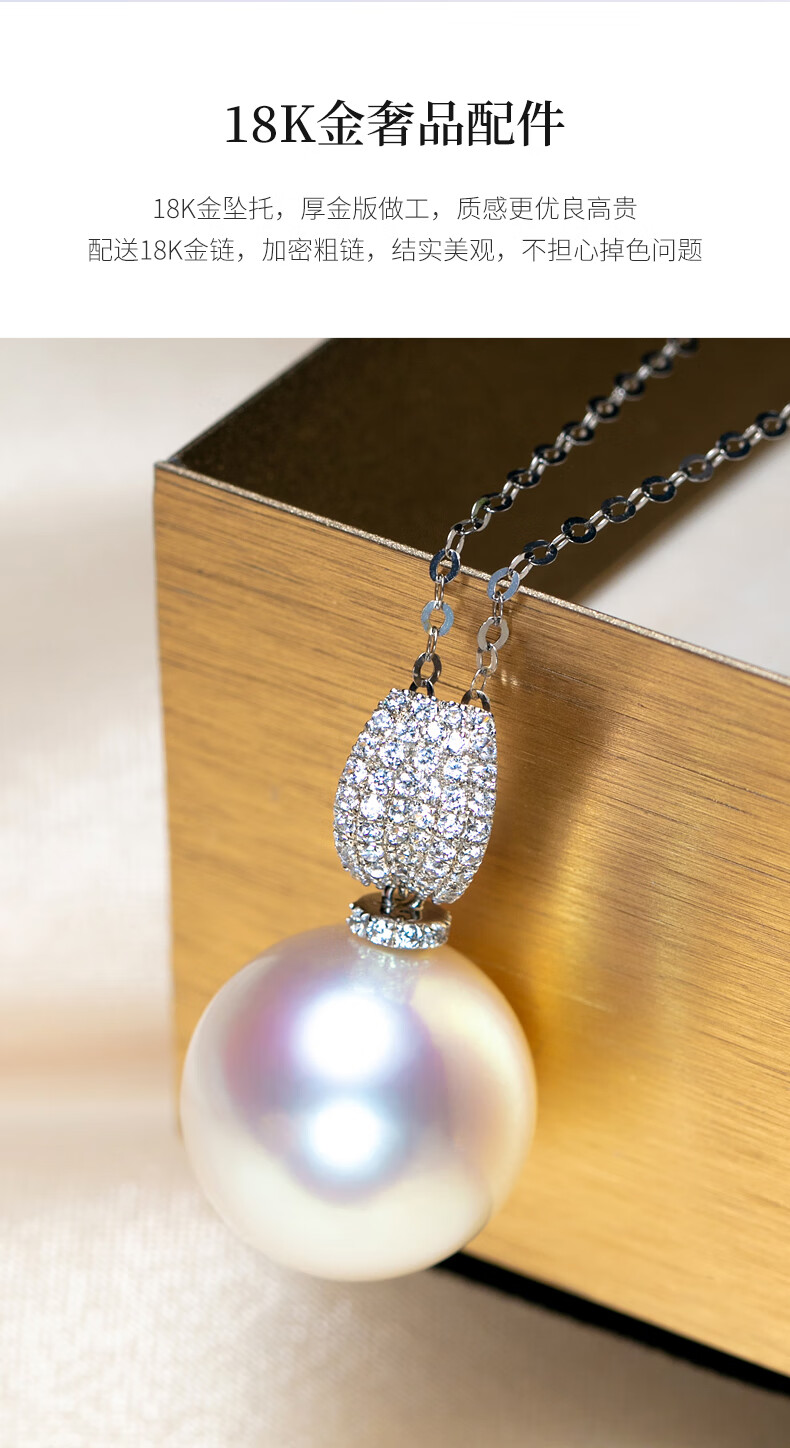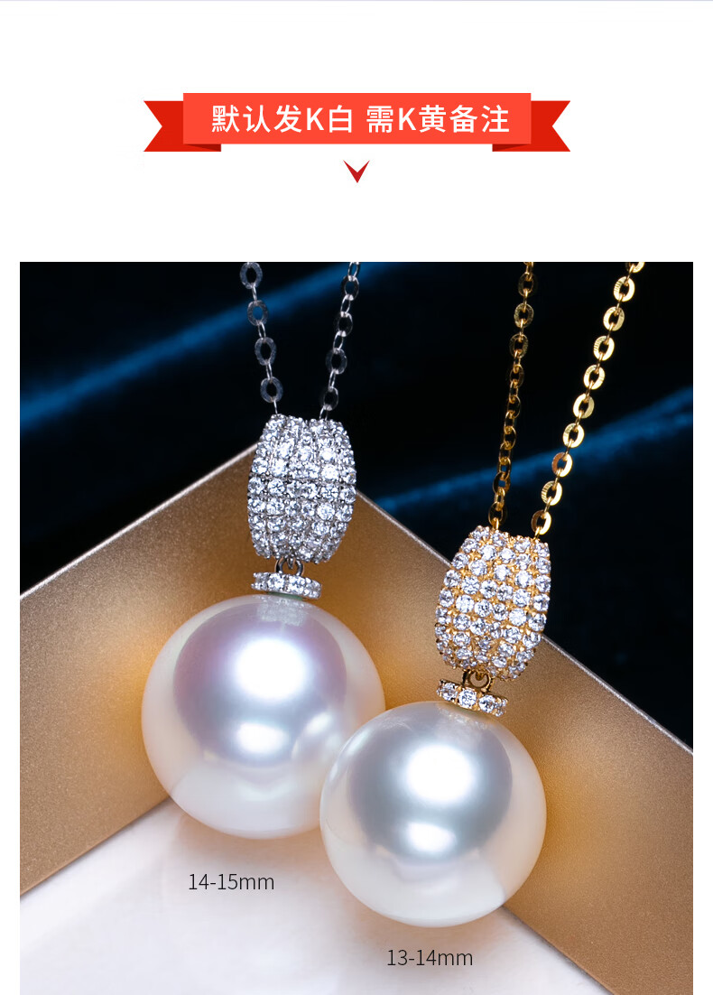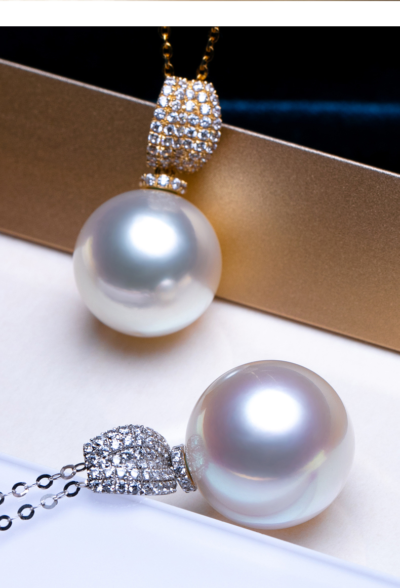 Haitong luxury thickened large tray 18K gold Nanyang Australian white pearl pendant single women's seawater necklace temperament necklace white 18K gold pink light 13-14mm
