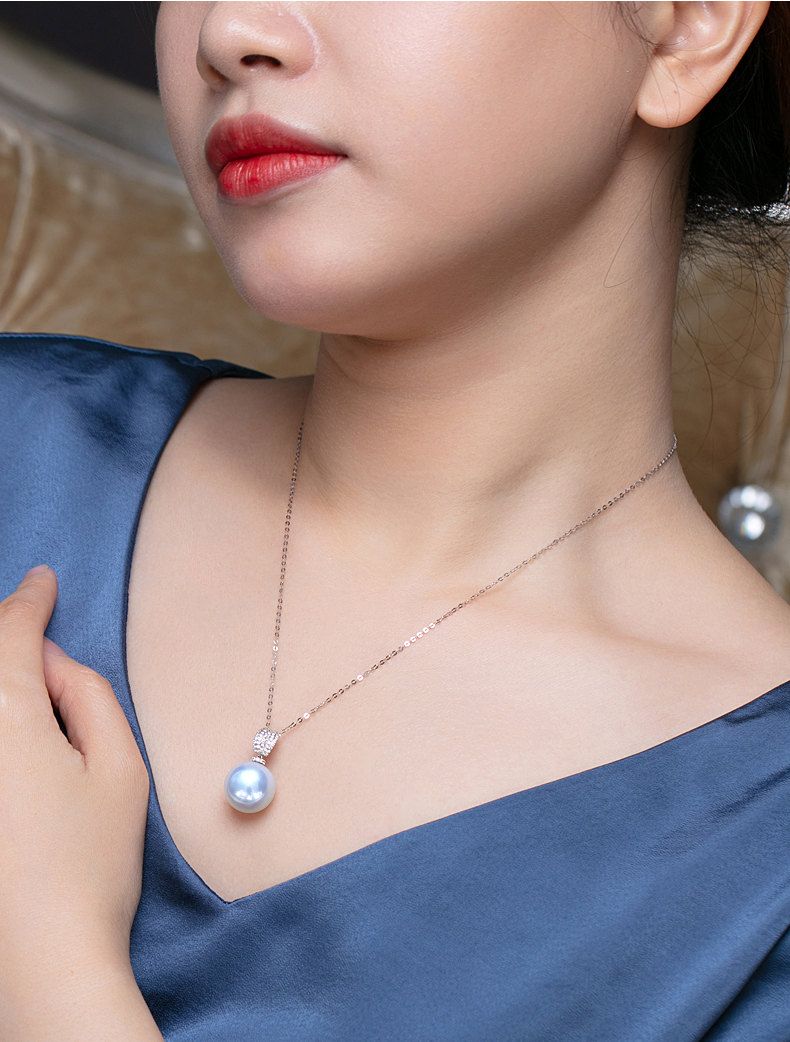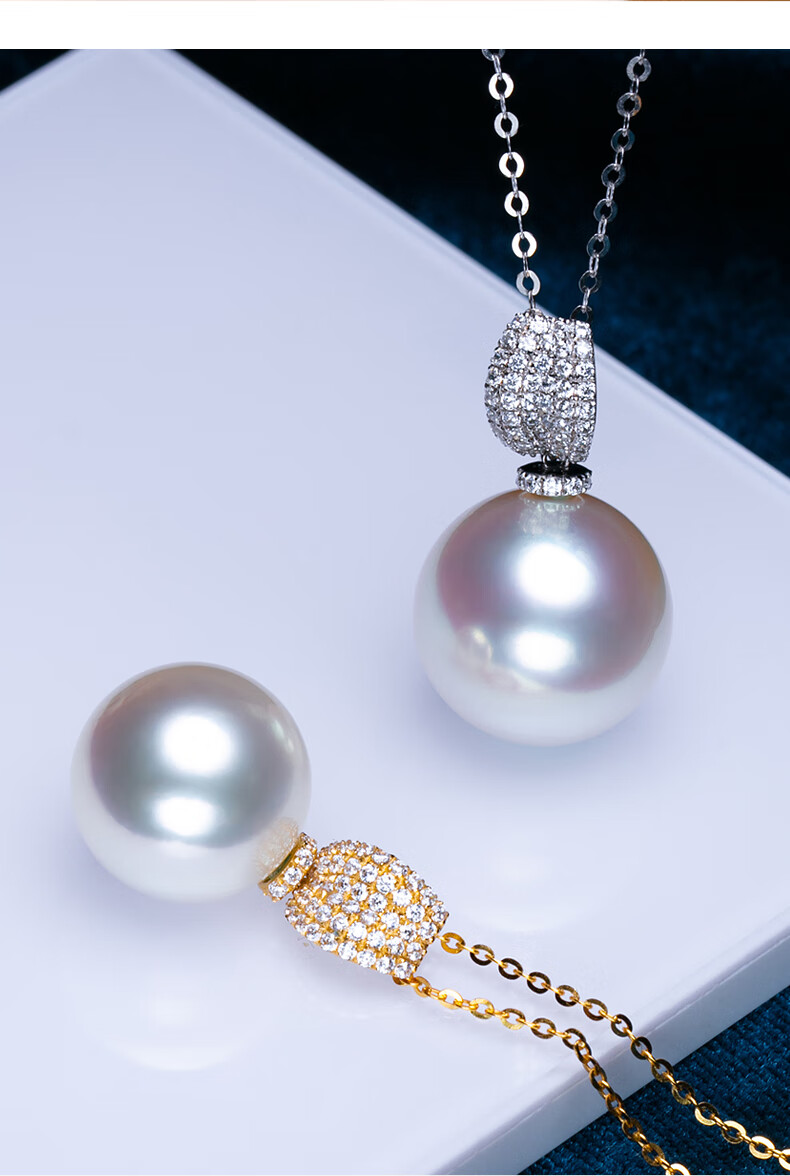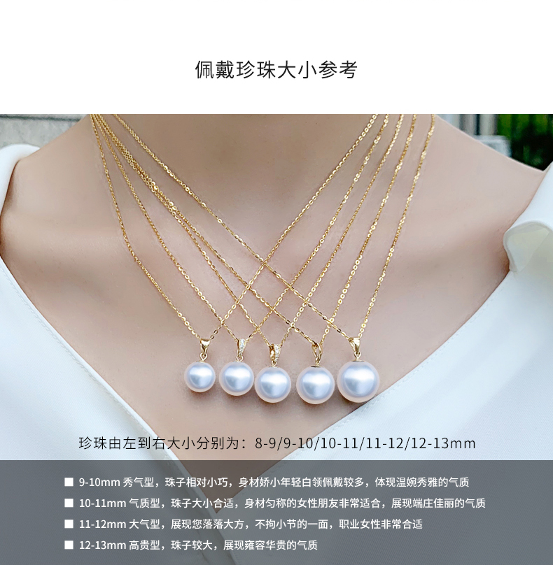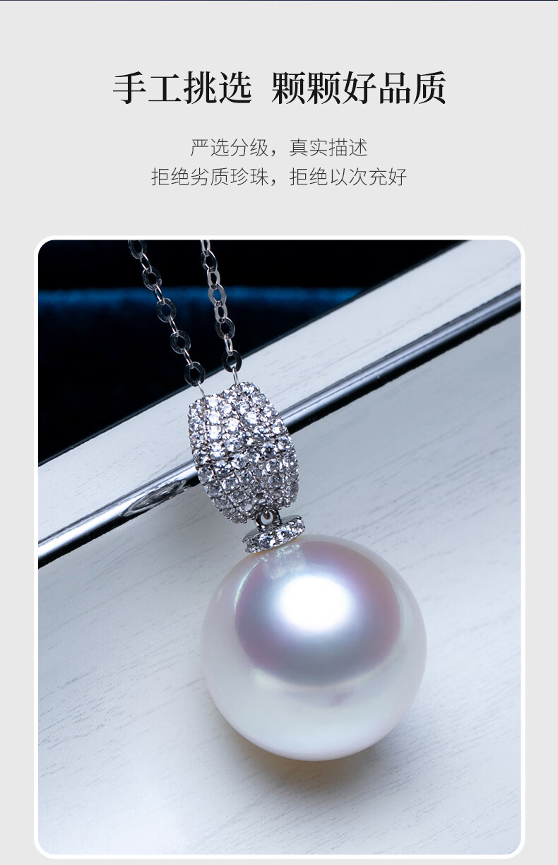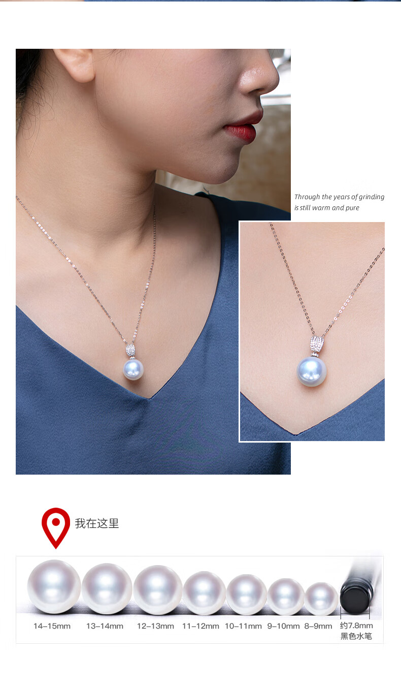 Haitong luxury thickened large tray 18K gold Nanyang Australian white pearl pendant single women's seawater necklace temperament necklace white 18K gold pink light 13-14mm