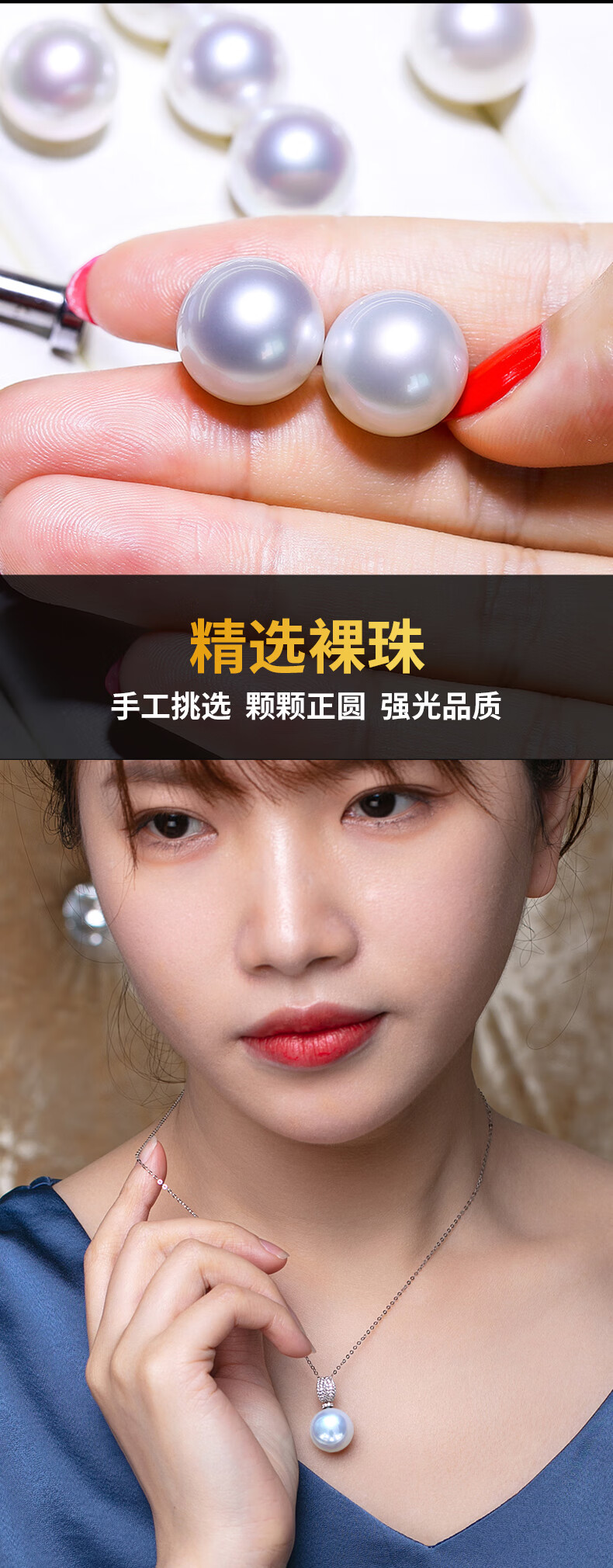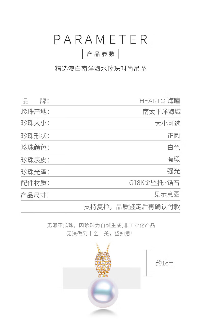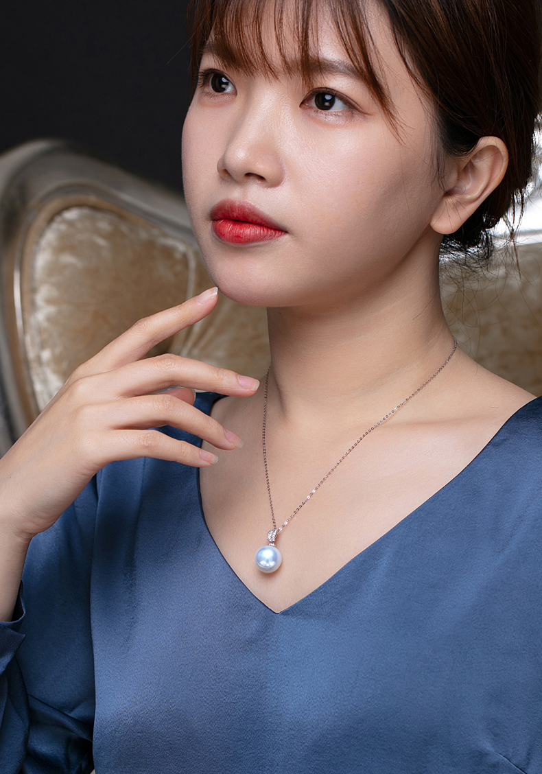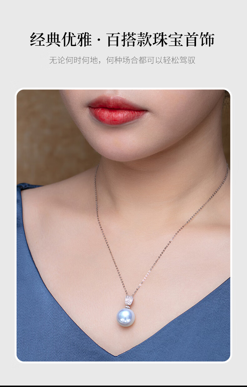 Haitong luxury thickened large tray 18K gold Nanyang Australian white pearl pendant single women's seawater necklace temperament necklace white 18K gold pink light 13-14mm
