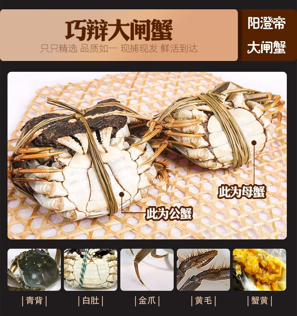 Live crab Yangcheng Emperor hairy crab fresh spot extra large male crab female crab exquisite gift box spot male 5.0 two female 4.0 two 5 pairs 10 pieces