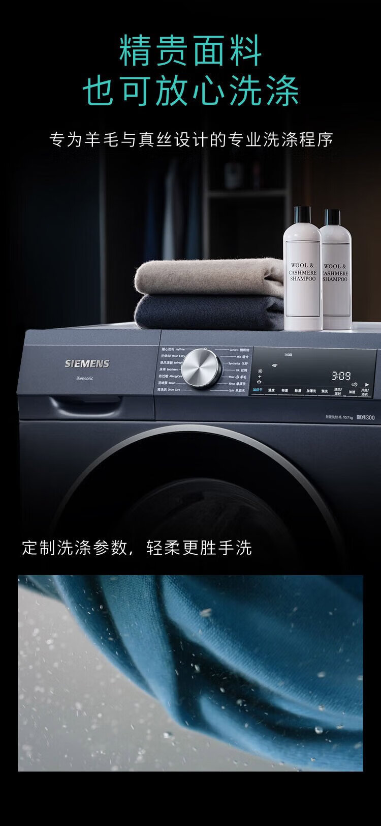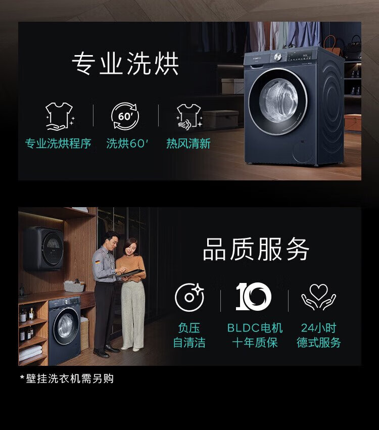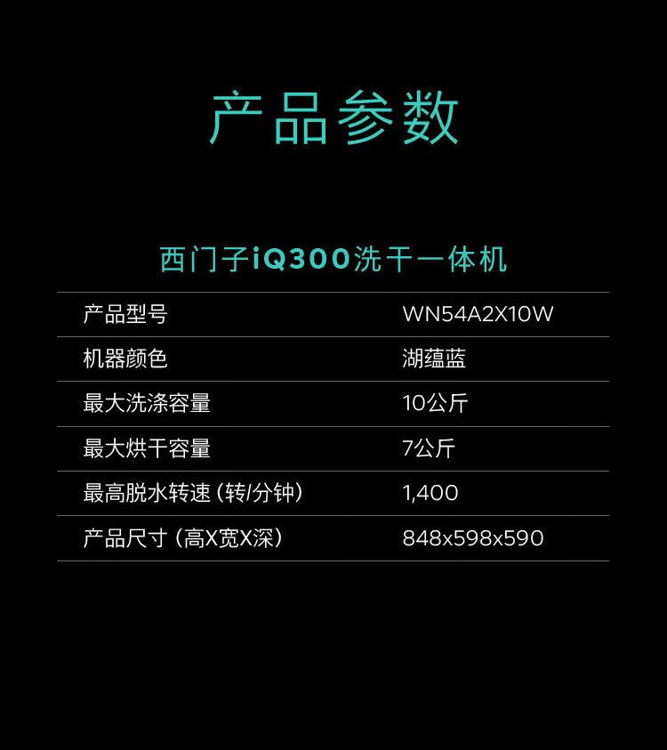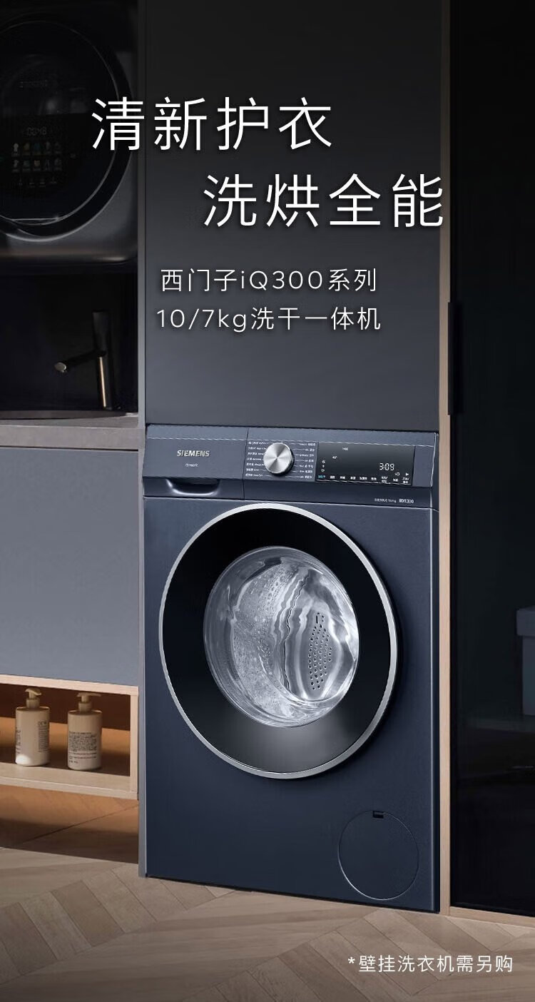 SIEMENS iQ300 10kg washing and drying machine, fully automatic variable frequency drum washing machine with large capacity, fresh hot air, intelligent stain removal, sterilization and mite removal, supports national subsidies WN54A2X10W