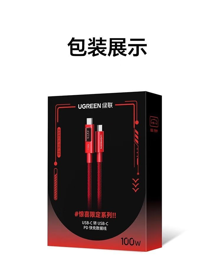 UGREEN double-ended Type-C data cable PD100W fast charging c to c car charging cable Carplay suitable for Apple iPhone17/16/15/iPad tablet notebook Huawei 100w丨Aluminum shell braid-grey dual Type-C interface 1 meter