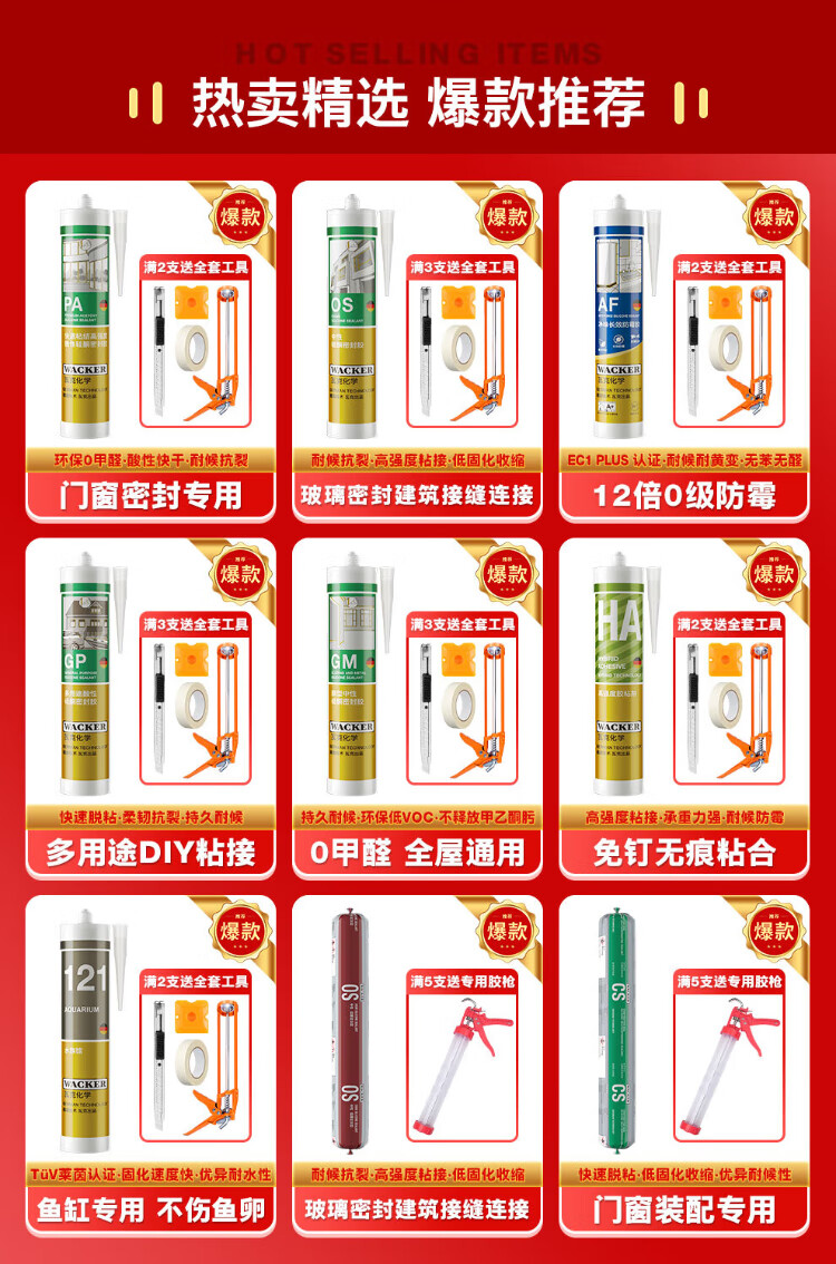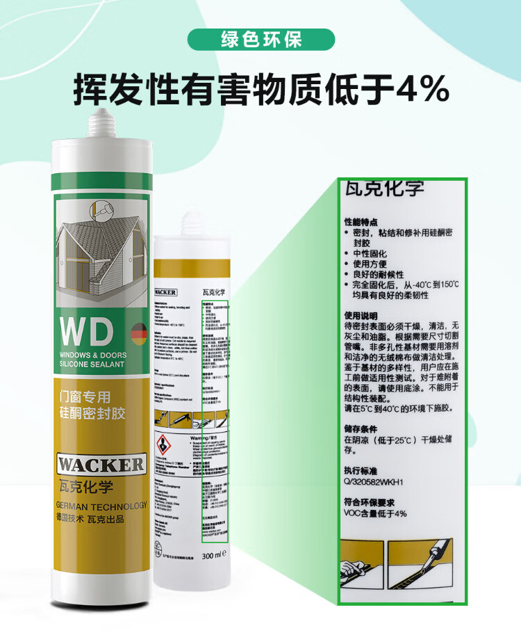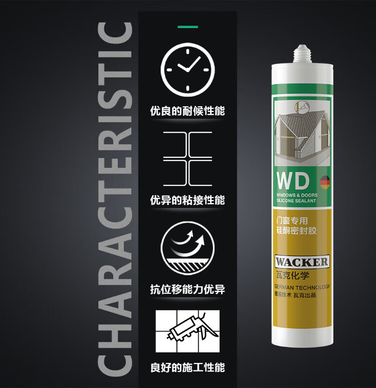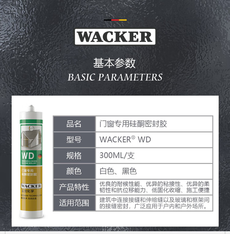 WACKER WD mildew-resistant glass glue, sealant, caulking glue, neutral outdoor weather-resistant waterproof glue, door, window and curtain wall structural glue, neutral weather-resistant sealant, black