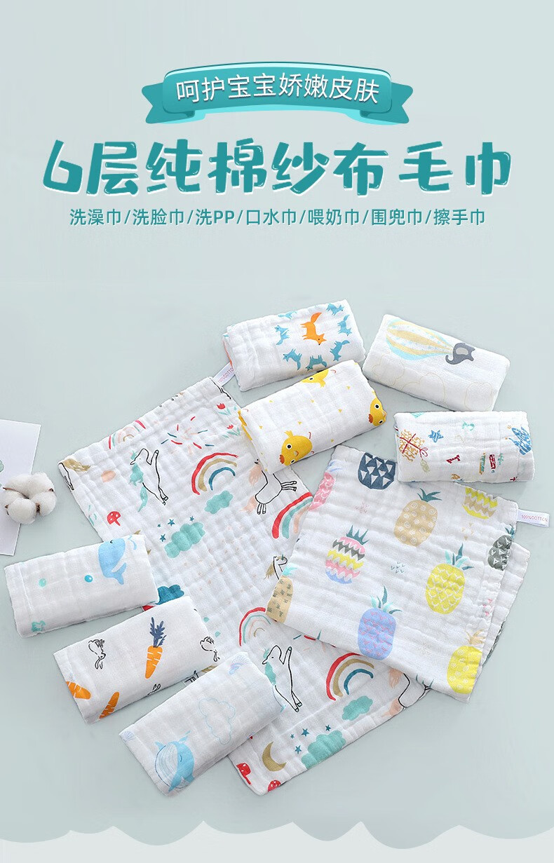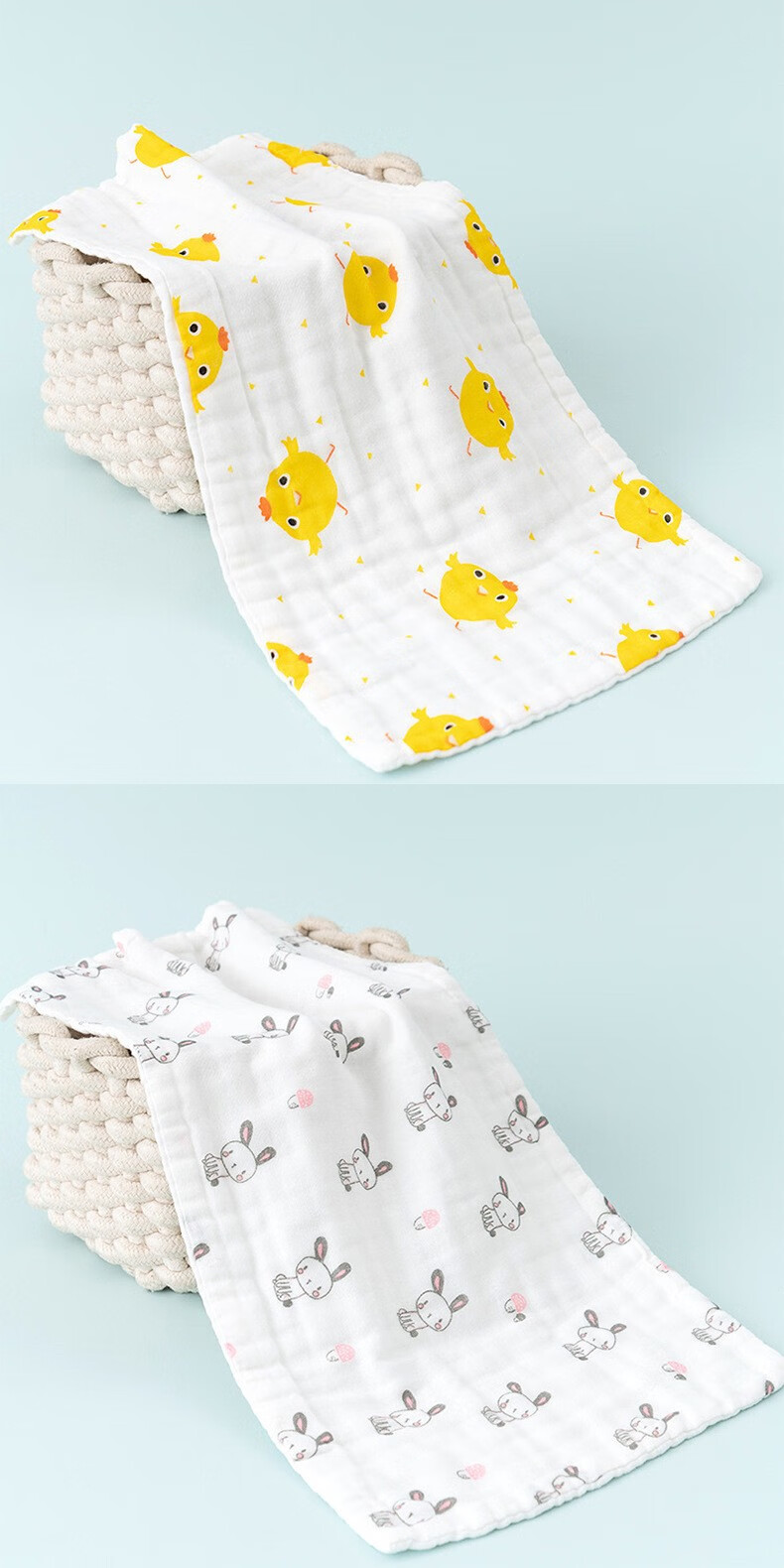 Damian baby 6-layer gauze towel, pure cotton, super soft, newborn child face towel square towel, baby saliva feeding towel, strawberry + carrot rabbit + full bottom baby elephant + Bella elephant 25 50cm