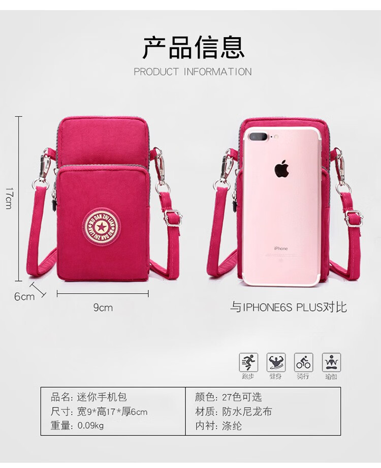 QUEEN TRIP 2022 new mobile phone bag Korean style canvas shoulder bag diagonal nylon coin purse outdoor running bag sports arm bag sky blue