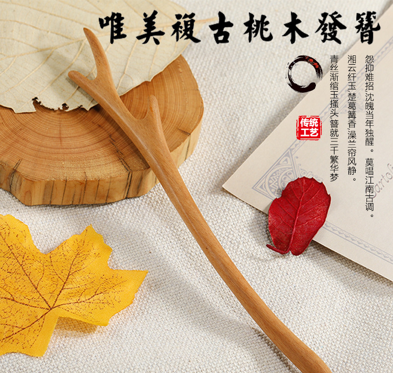 Meng Junchen Internet celebrity Yi Lu You Ni peach wood hairpin cheongsam Hanfu deer antlers hairpin accessories gift hair accessories to best friends finished deer antlers