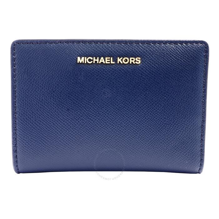 MICHAEL KORS luxury fashion brand women's wallet blue embossed leather short MK metal logo 32T8GF6D6T-436 pic os