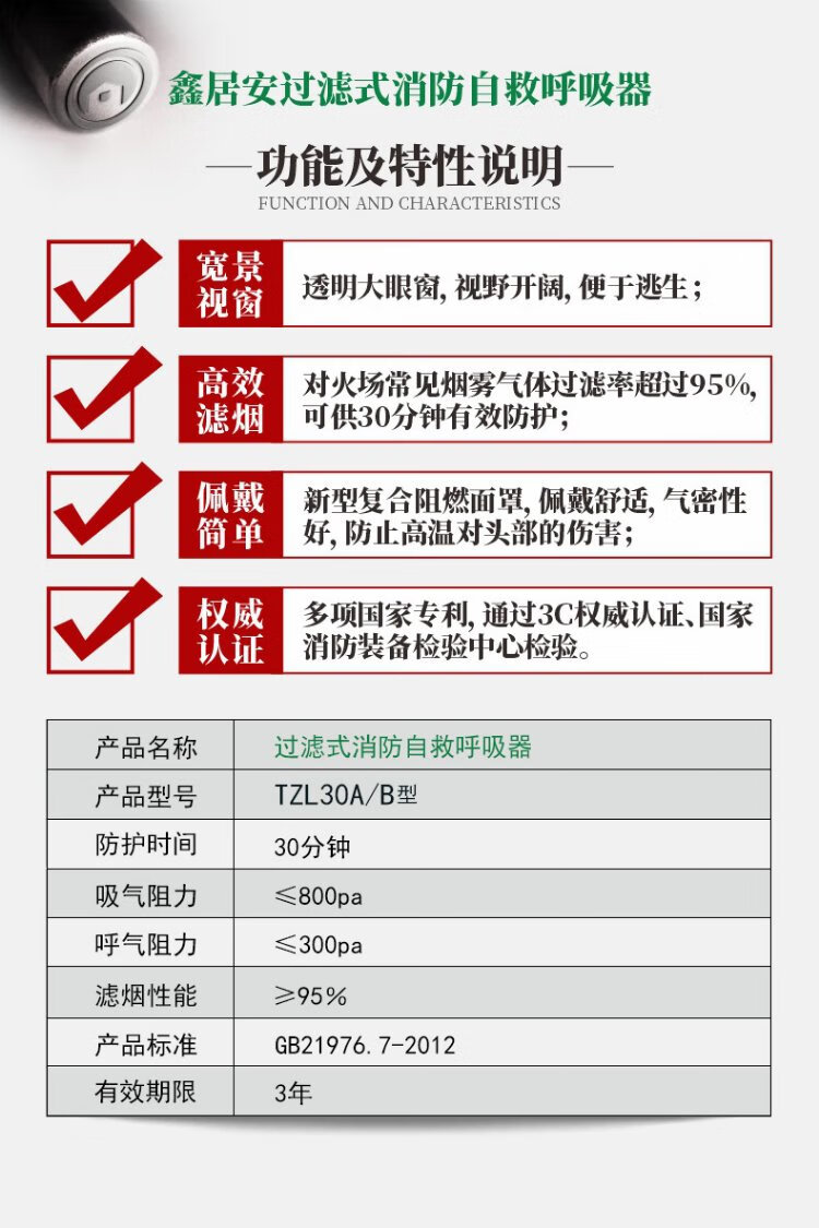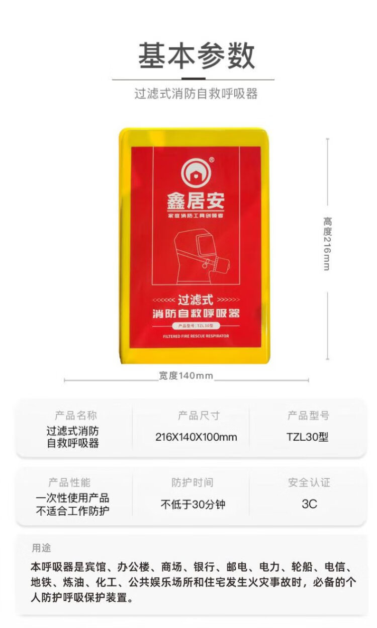 Xinjuan fire self-rescue respirator fire escape mask anti-smoke mask household commercial 3C certification JD delivery basic version*1 anti-smoke mask