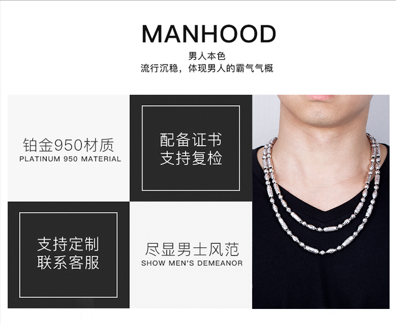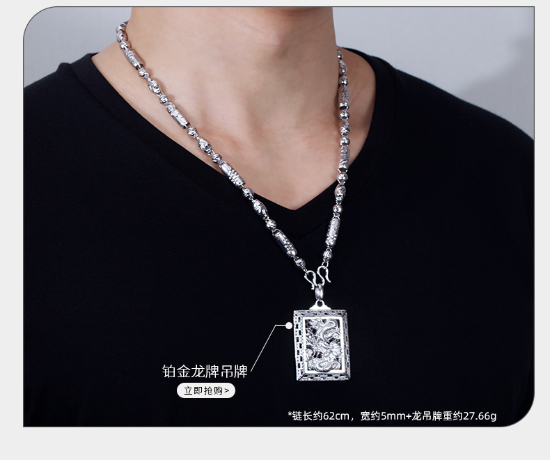 Jin Duoxi Jewelry pt950 platinum necklace men's dragon pillar bamboo platinum necklace plain chain men's and women's platinum thick chain about 31.98 grams long about 55 cm thick about 6 mm