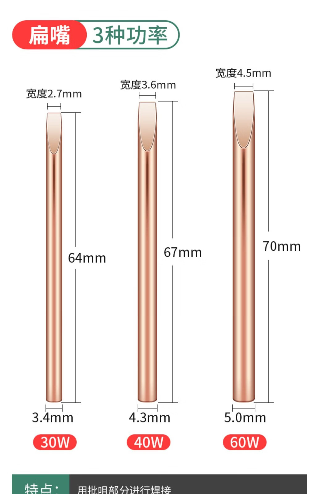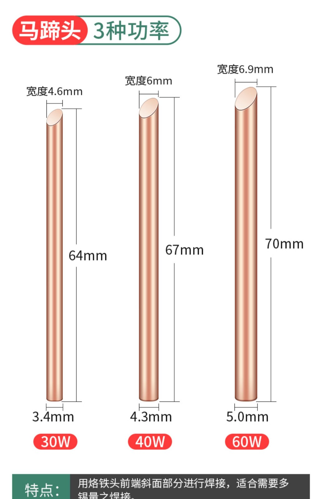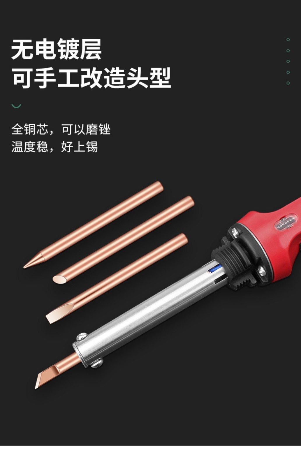 Luxianzi external heating pure copper electric soldering iron tip with special tip welding horn, non-magnetic soldering iron tip, pure copper non-magnetic soldering iron tip, 60w pure copper, red copper tip