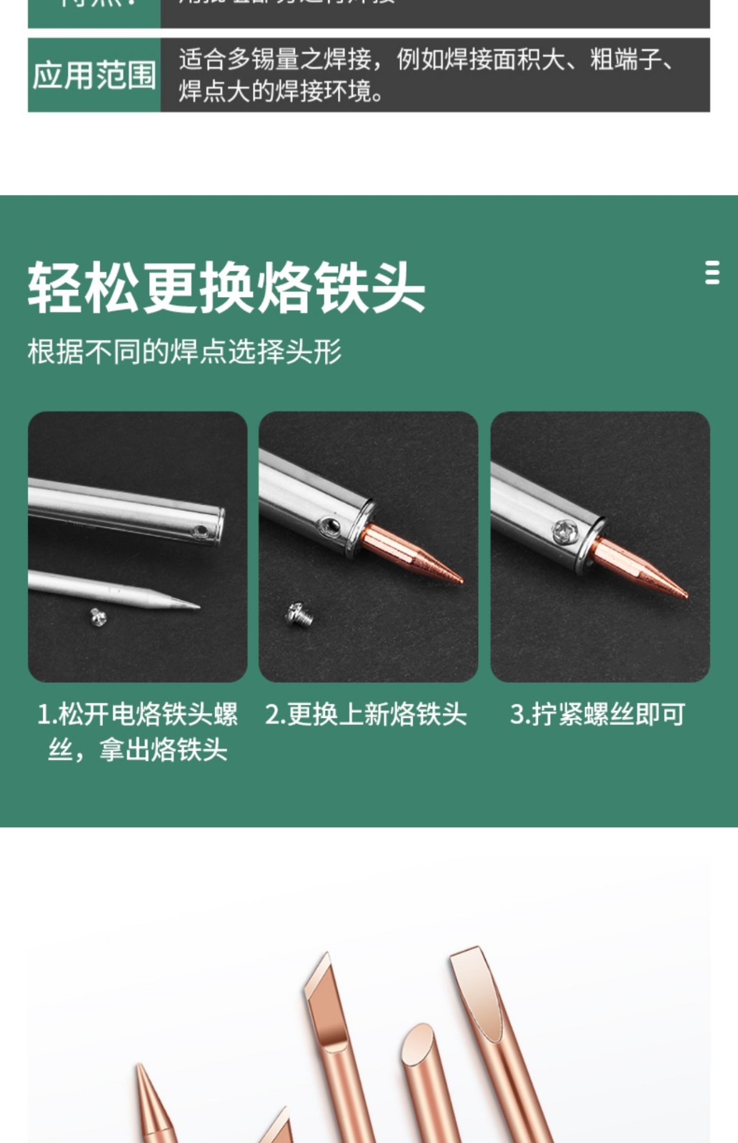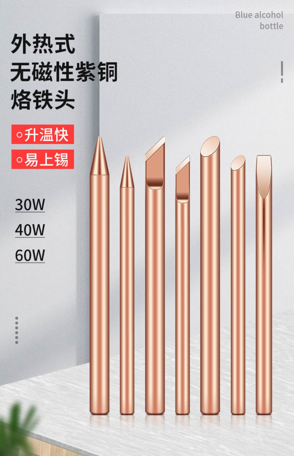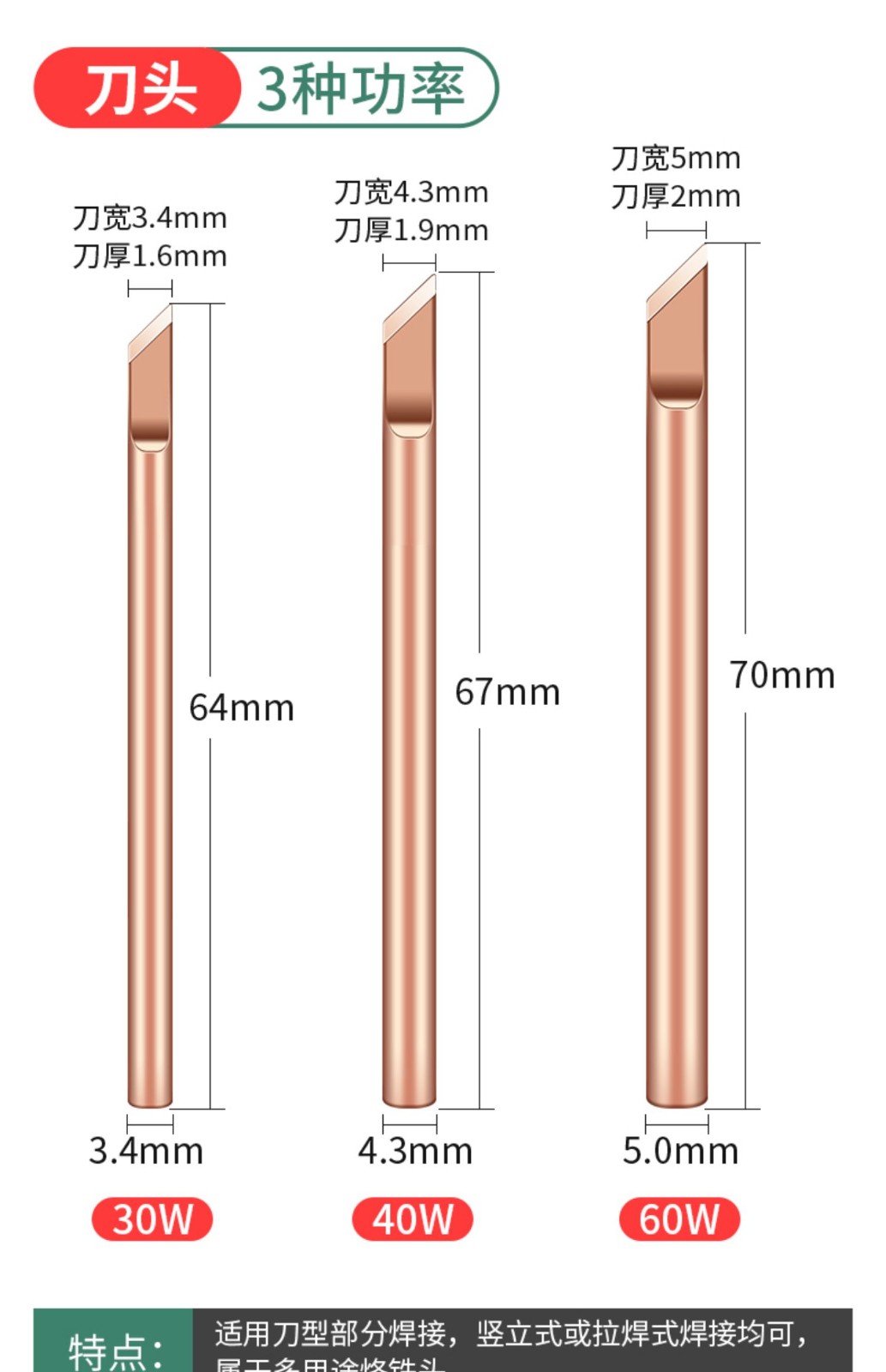 Luxianzi external heating pure copper electric soldering iron tip with special tip welding horn, non-magnetic soldering iron tip, pure copper non-magnetic soldering iron tip, 60w pure copper, red copper tip