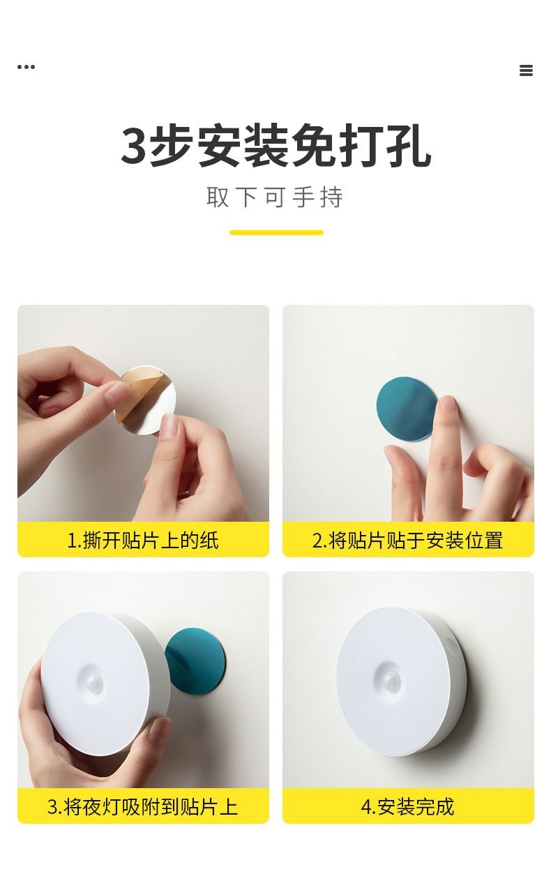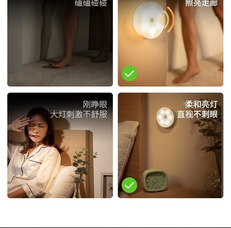 Nuofeng Rechargeable Nighttime Toilet Bathroom Home Aisle Wardrobe Night Light Intelligent Human Body Sensor Night Light Warm Light 4 Pack - Rechargeable Sensor Light