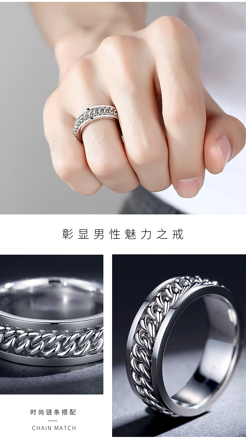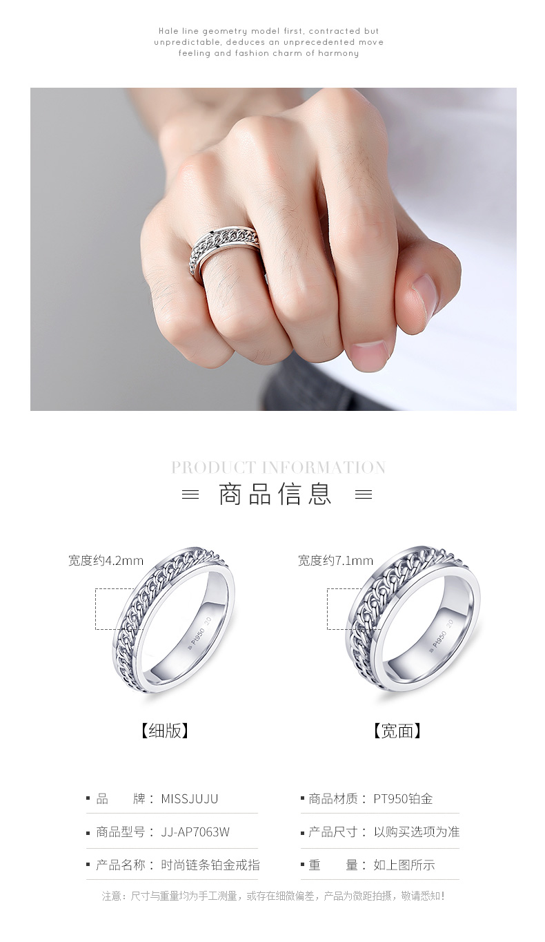Miss JuJu pt950 platinum twist ring for men, domineering and fashionable platinum ring, thick style, rotatable, customizable, size 16, about 18g, more refunds according to actual hair.
