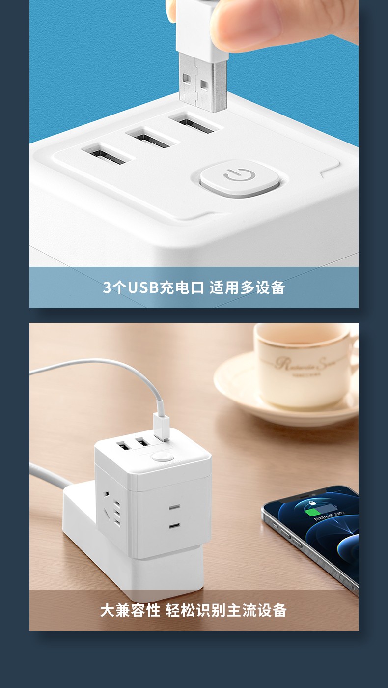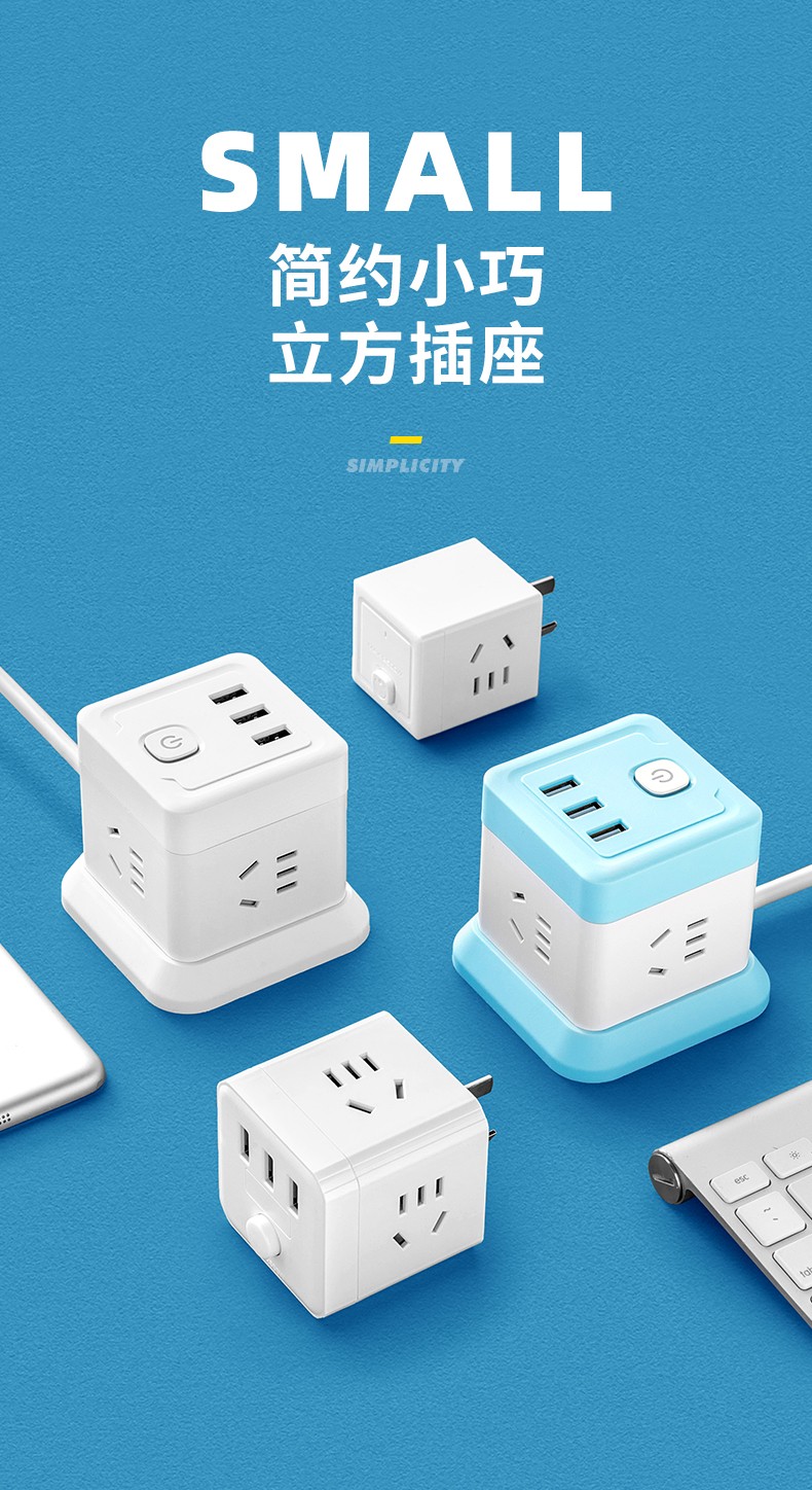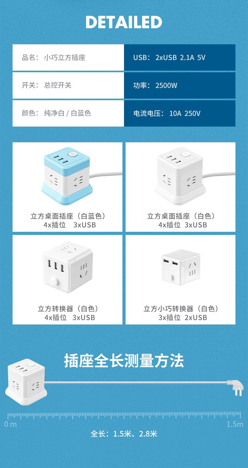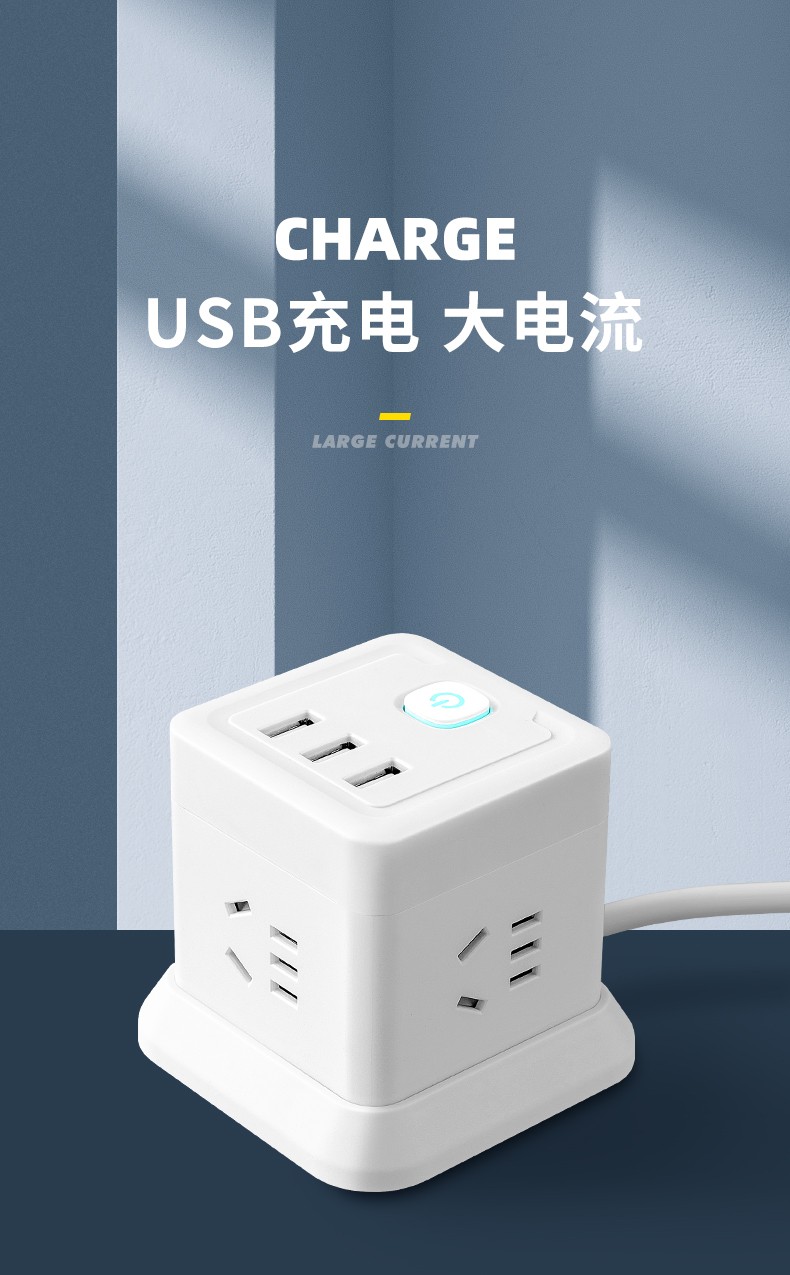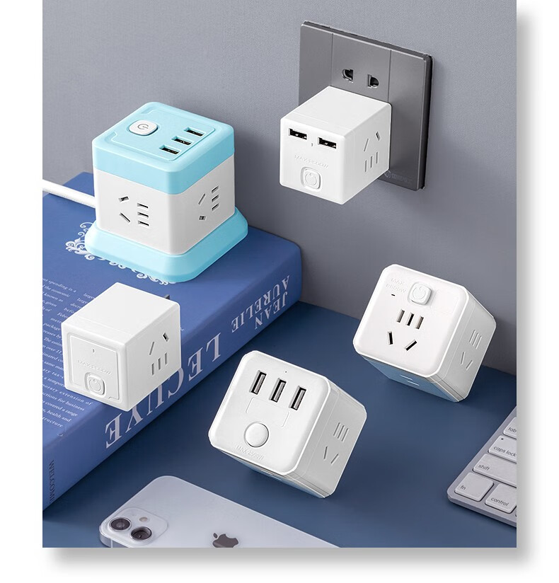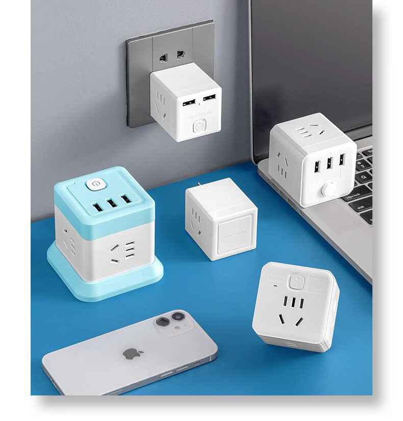 Multi-faceted Rubik's Cube Socket Converter New National Standard Multifunctional USB Insert Row One Turn Multi-Plug Board Wireless Strip Insert Power Conversion Plug Gongya Vertical Smart Electric Plug Board One Turn Five Without USB 5-sided Rubik's Cube