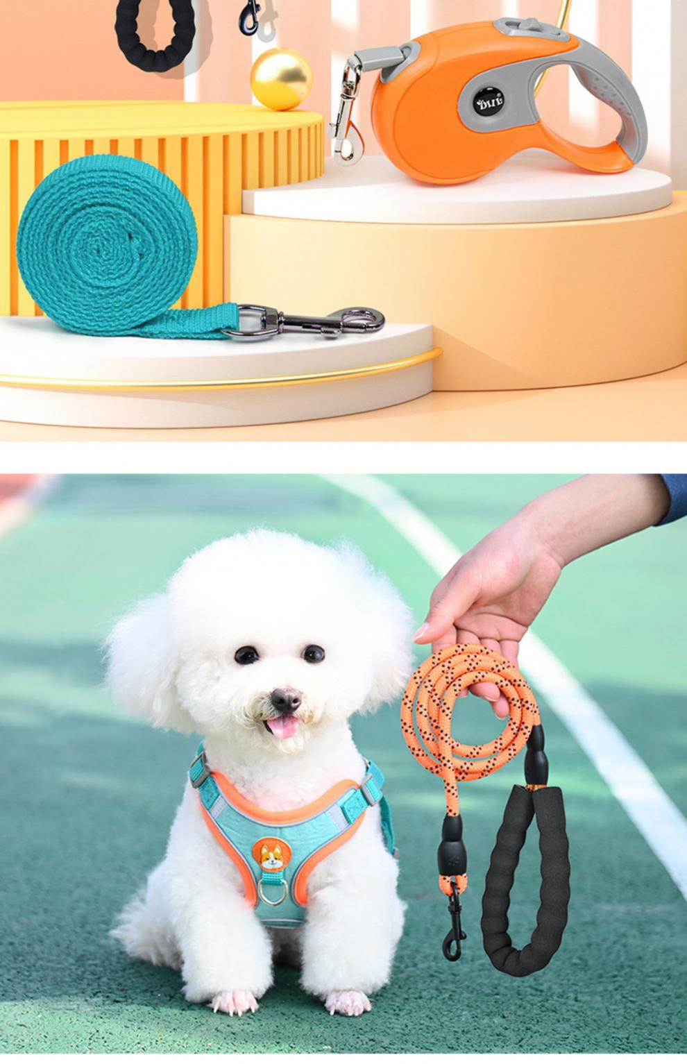 Tang Chong Dog Rope Dog Leash Small Dog Walking Rope Harness Bichon Teddy Pomeranian Puppy Chain Orange + 3m Automatic Retractable Rope M (Recommended Weight 7-13Jin Jin is equal to 0.5kg)