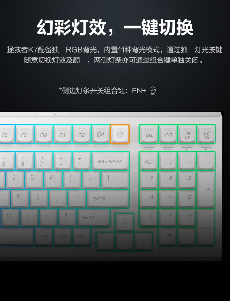 Lenovo (lenovo) MK7 savior mechanical keyboard multi-function gaming keyboard full-key conflict-free e-sports peripherals LOL/CF gaming keyboard green axis savior MK7 colorful-RGB backlight mechanical keyboard