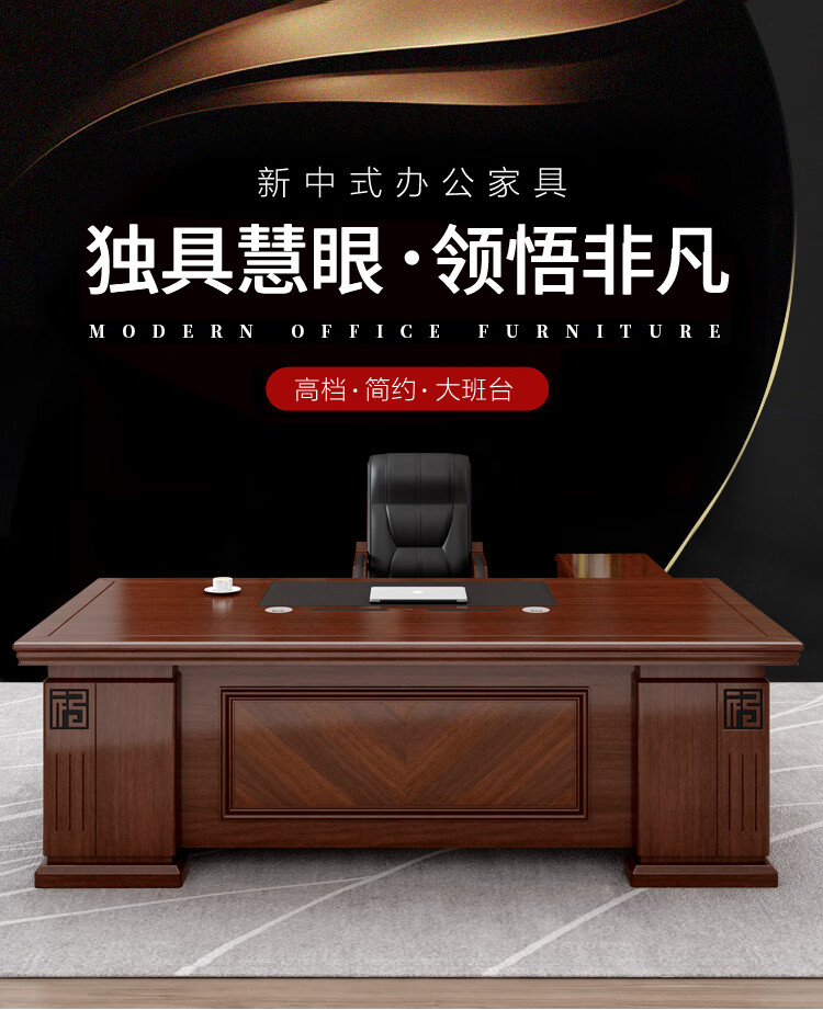 Li Lun new boss desk desk new Chinese style executive desk office office furniture single table 2.2 meters
