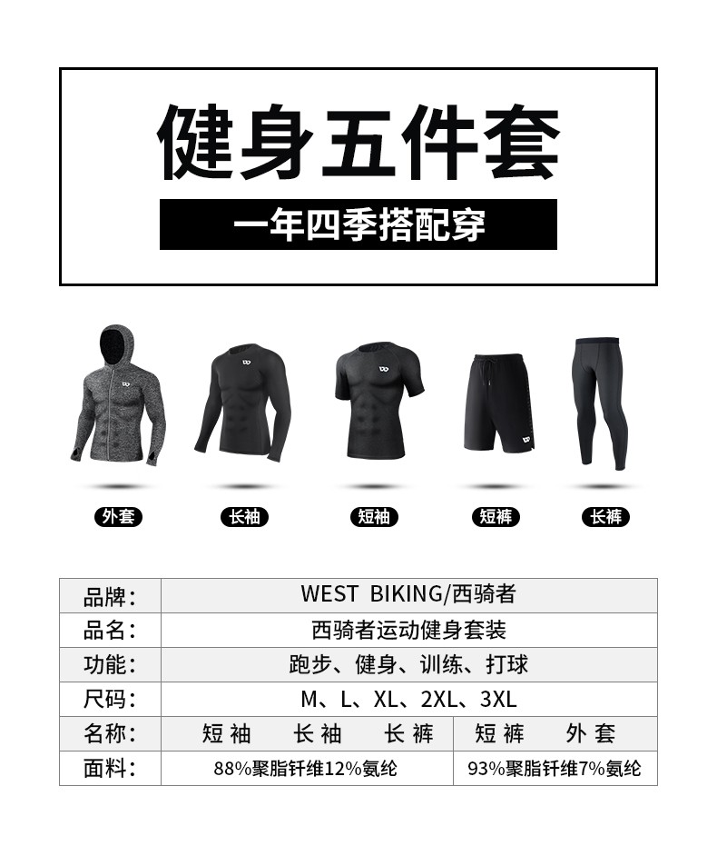 WestBiking sports suit men's five-piece summer sports fitness cycling suit quick-drying tight-fitting high-elastic breathable outdoor equipment trousers XL
