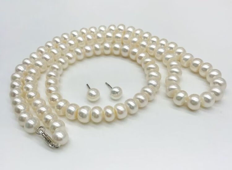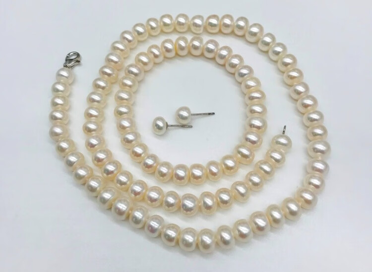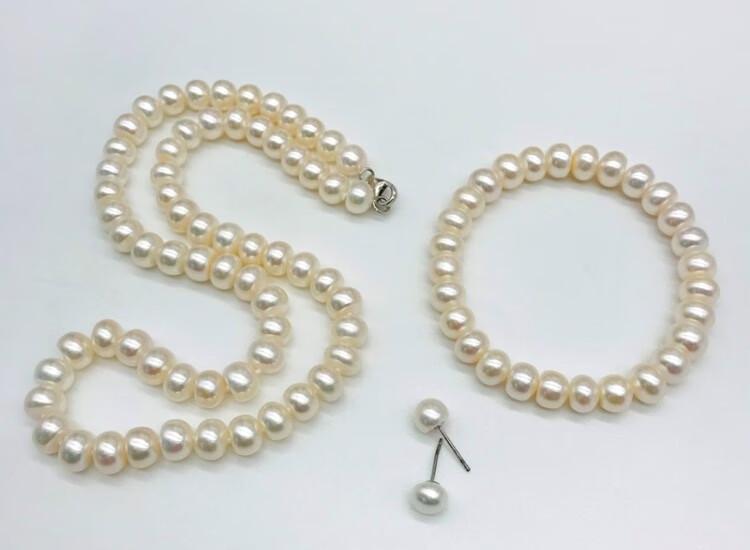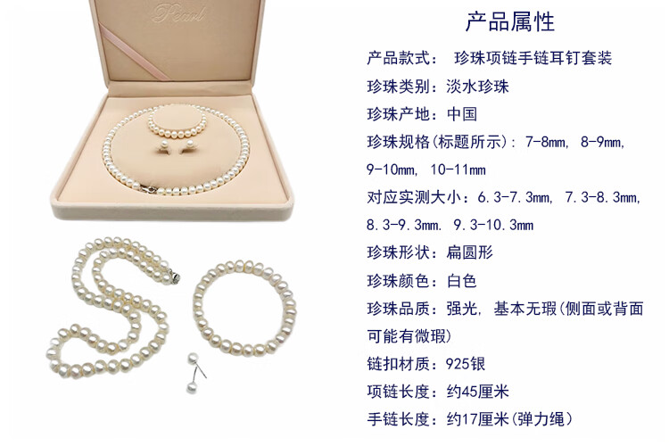 Drops of water turn into pearls Gift Nanzhu Family Elegant Nuclear Freshwater Pearl Earrings Simple No-Procrastination Pearl Gift Set 6.0-6.5mm White Pearls