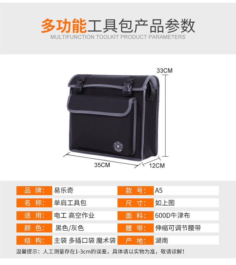 Yiluqi Tool Bag Electrician's Bag Storage Bag Printable Picture Large Multi-Function Shoulder Large Capacity Thickened Oxford Cloth Waterproof Electrician's Tool Bag Canvas Tool Bag Repair Satchel A5 Large Size-39cm*11.5cm*28cm
