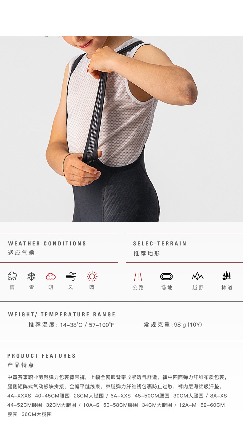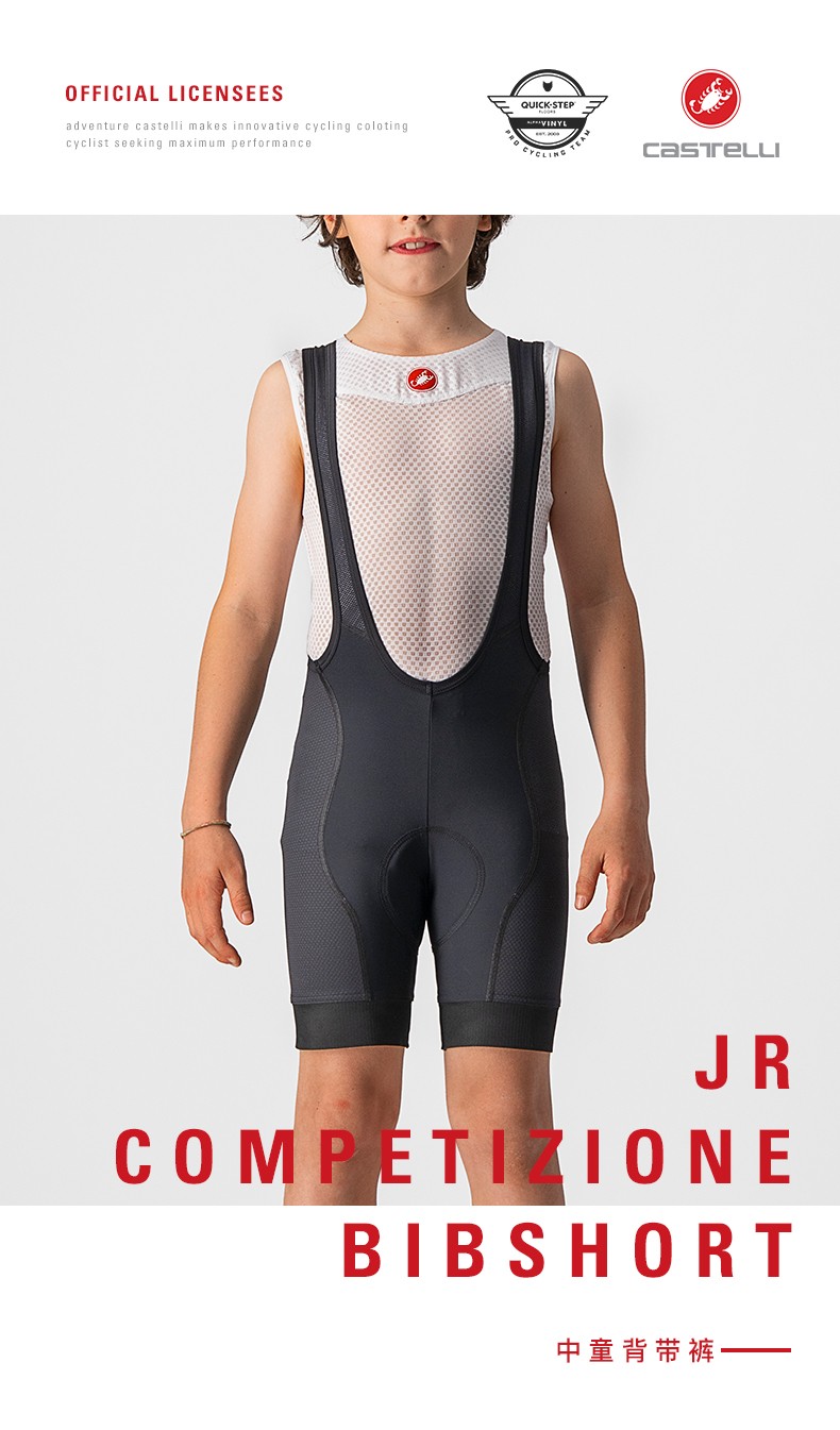 Castelli scorpion boys and girls cycling jersey bib shorts professional tailoring aerodynamic optimized design 4522073 101 black/white label 3XS