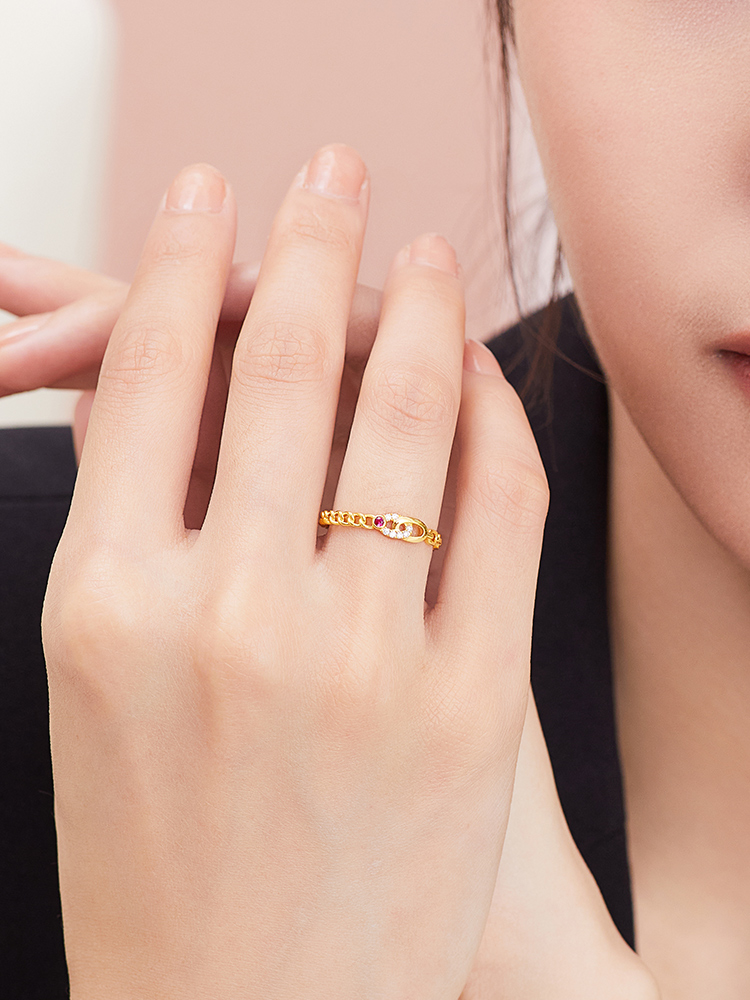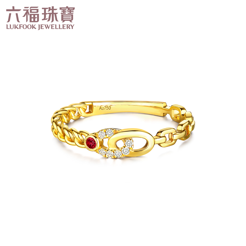 Lukfook Jewelry 18K gold diamond ruby ring gift cMDSKR0043Y No. 11 - total weight 1.30 grams