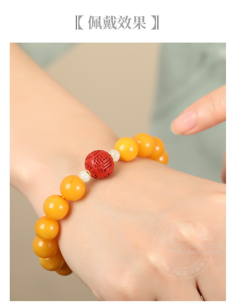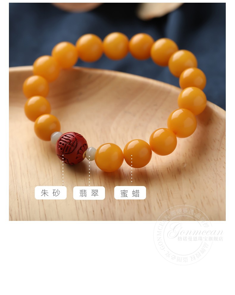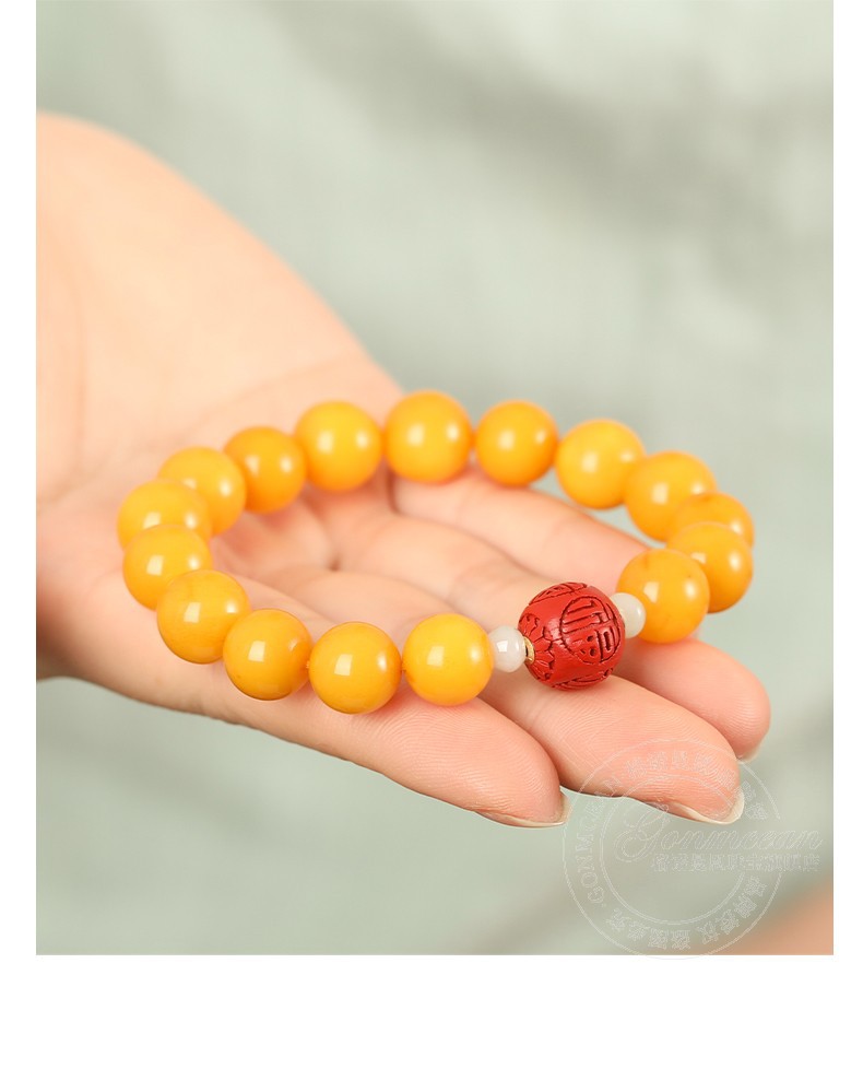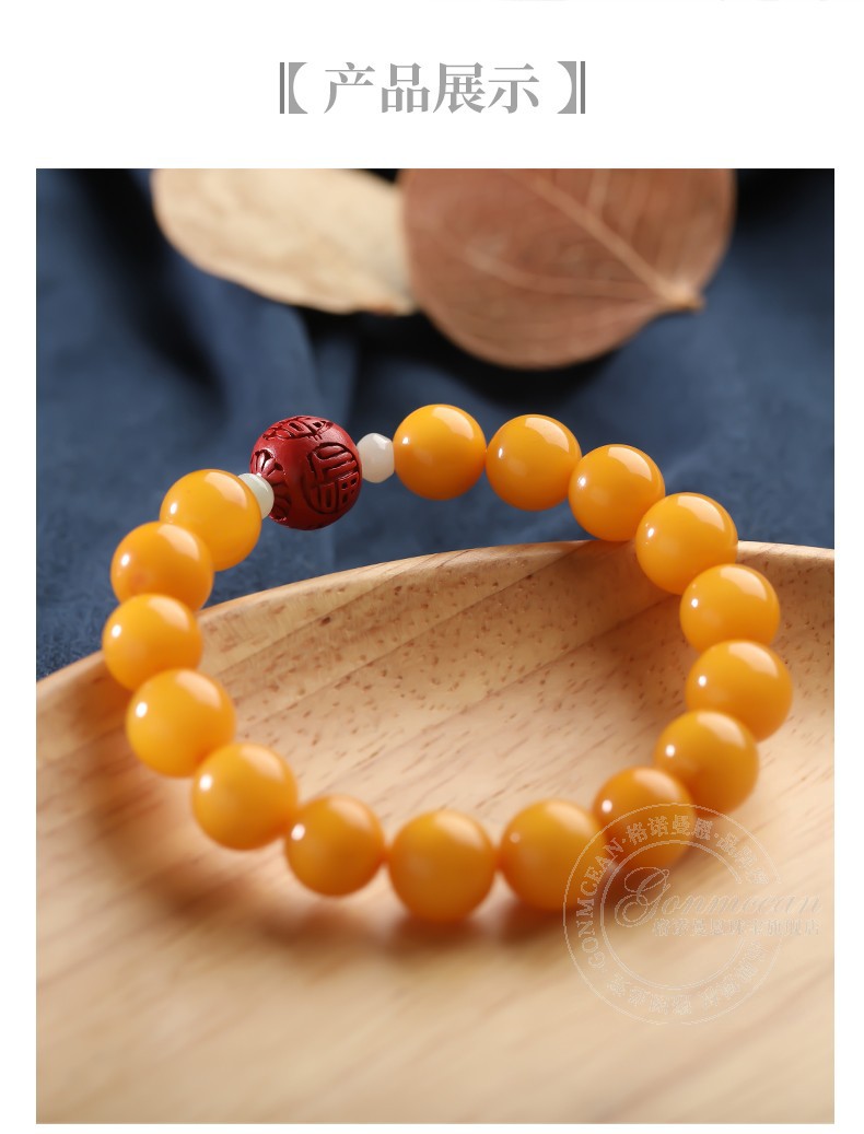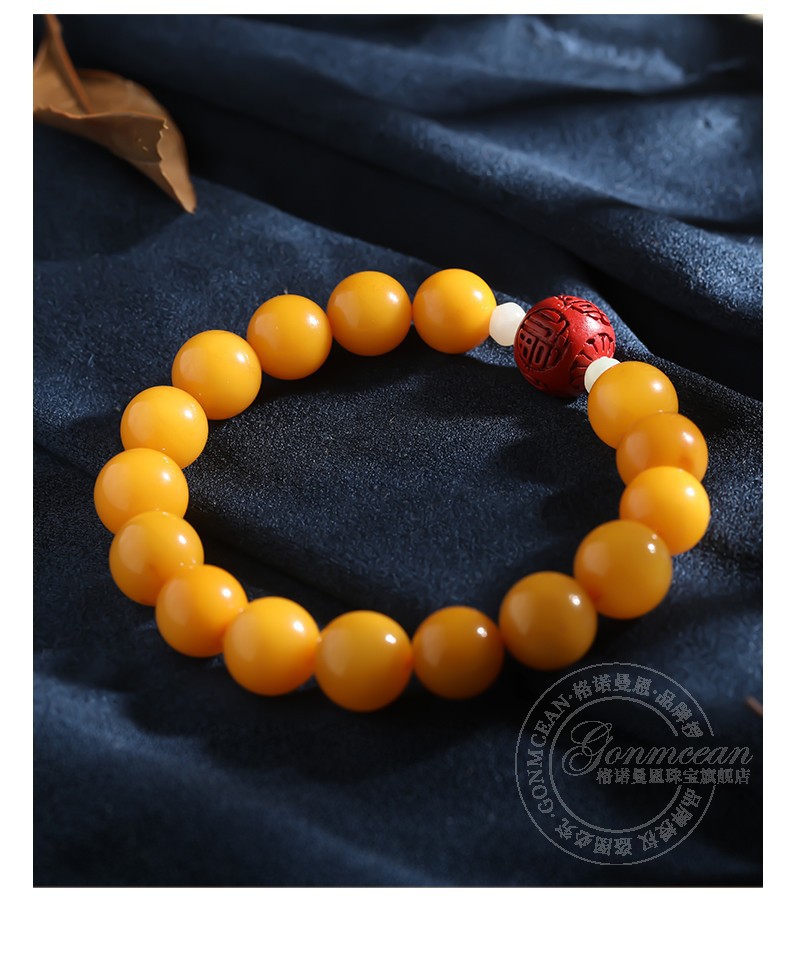 GONMCEAN Chicken Fat Yellow Beeswax Bracelet Round Bead Bracelet Old Honey Amber Bracelet with Pattern Blessings Women's Gift
