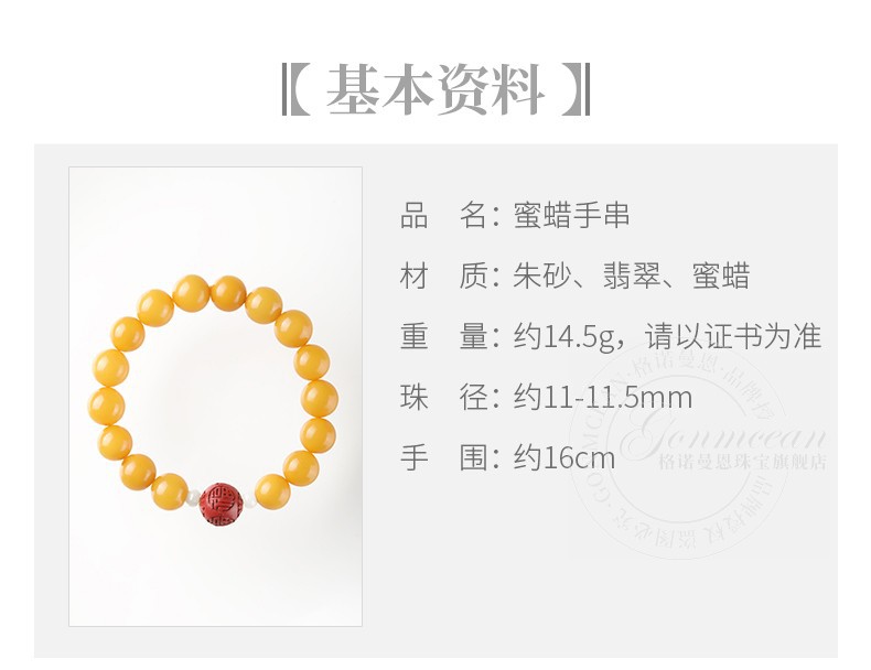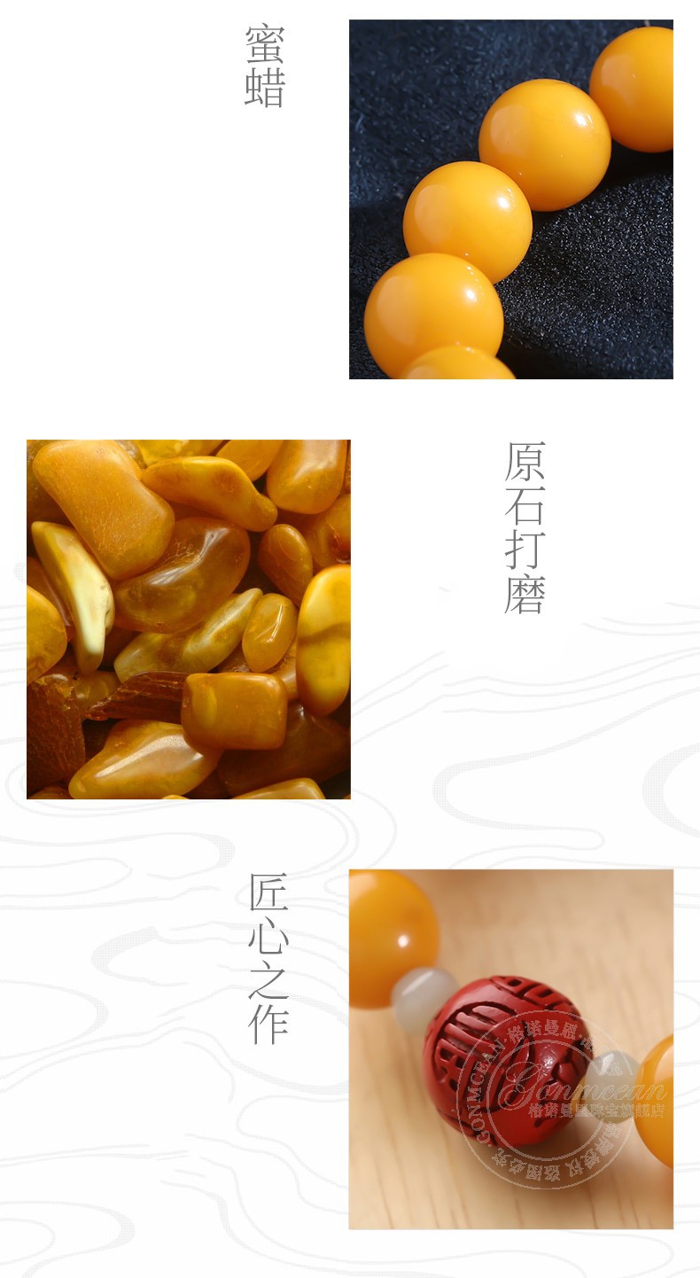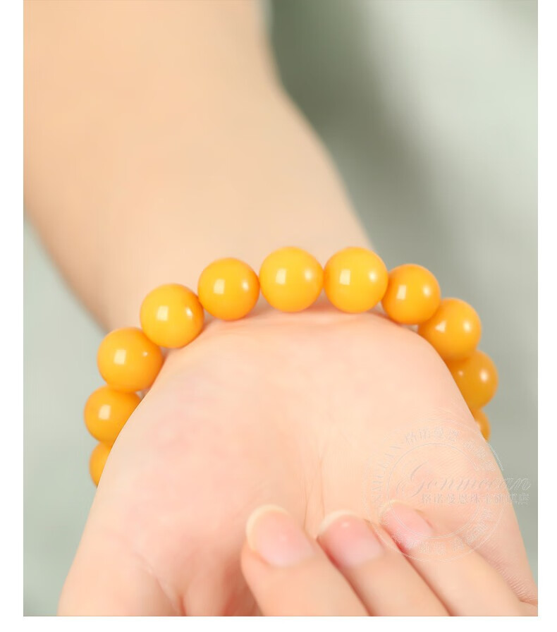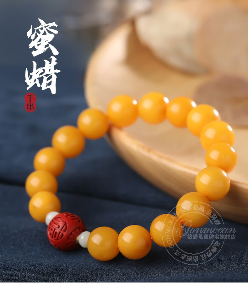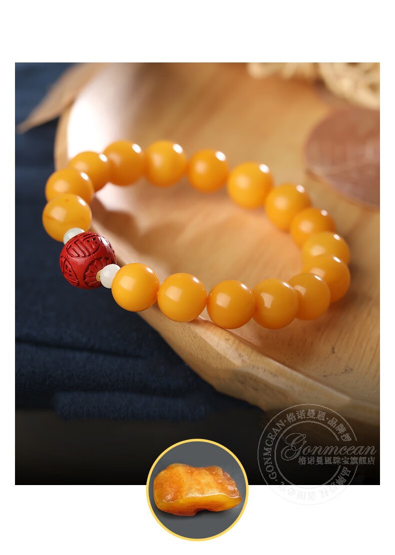 GONMCEAN Chicken Fat Yellow Beeswax Bracelet Round Bead Bracelet Old Honey Amber Bracelet with Pattern Blessings Women's Gift