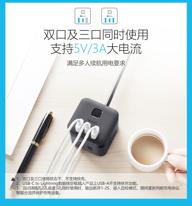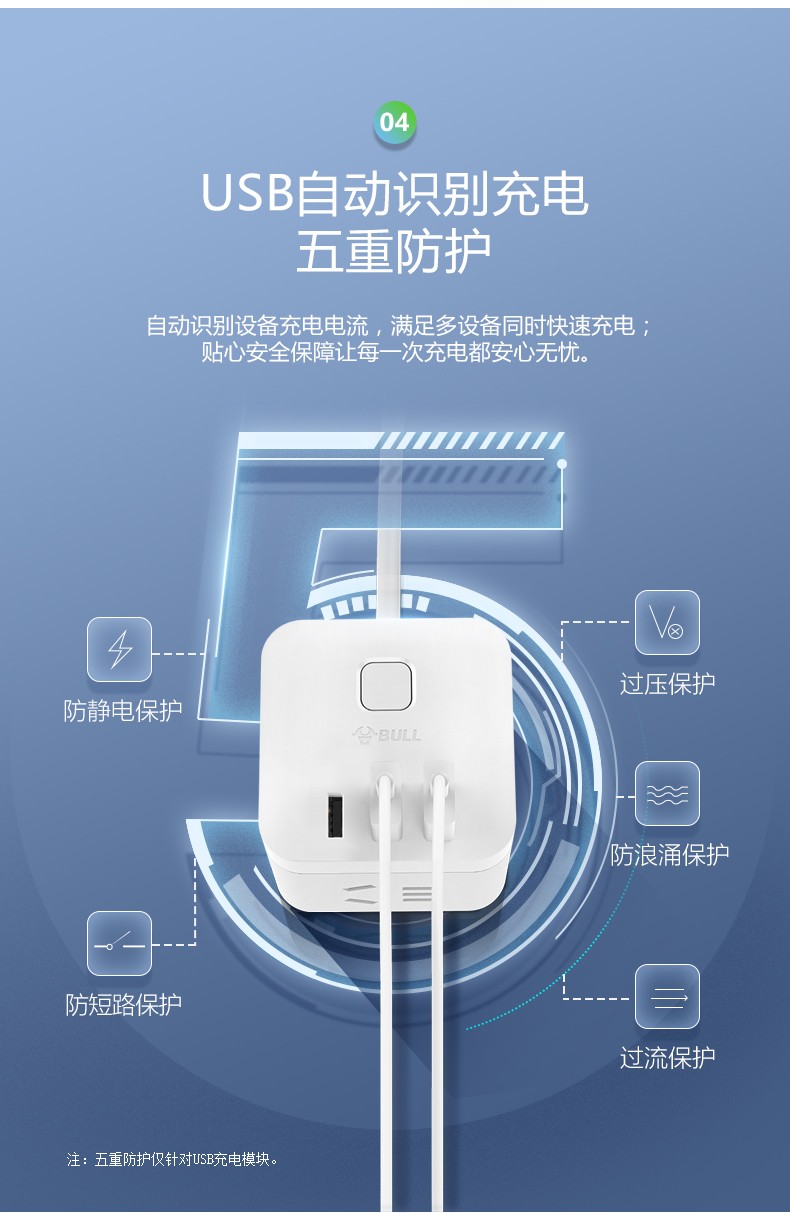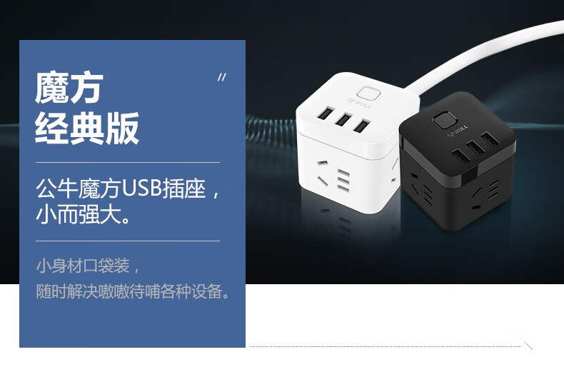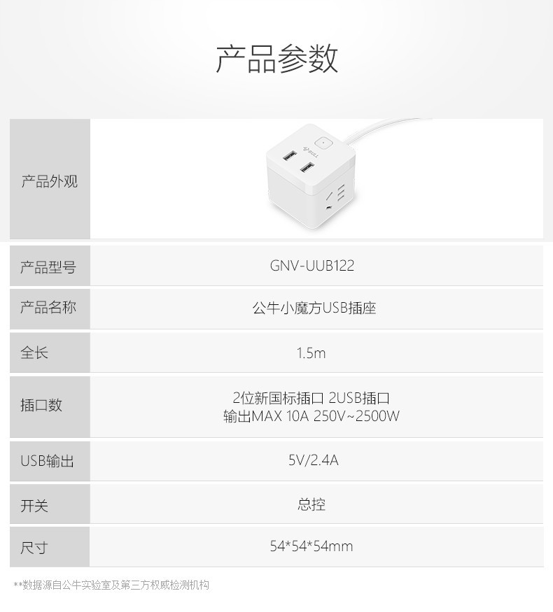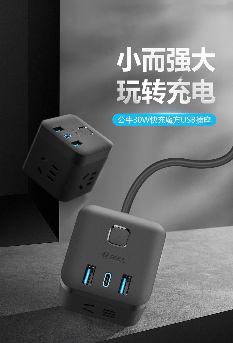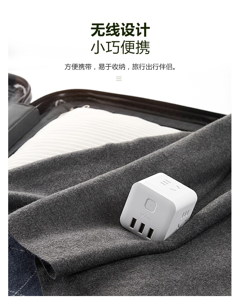 Bull (BULL) Wireless Rubik's Cube multifunctional USB charging conversion plug household plug strip white multi-hole socket square plug strip 2 holes + night light wireless