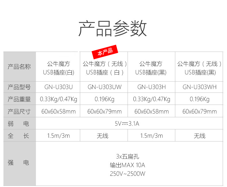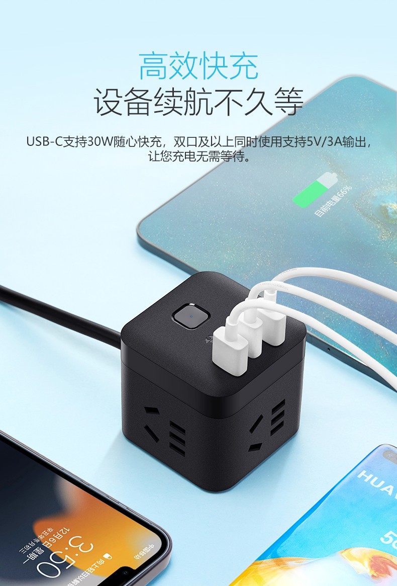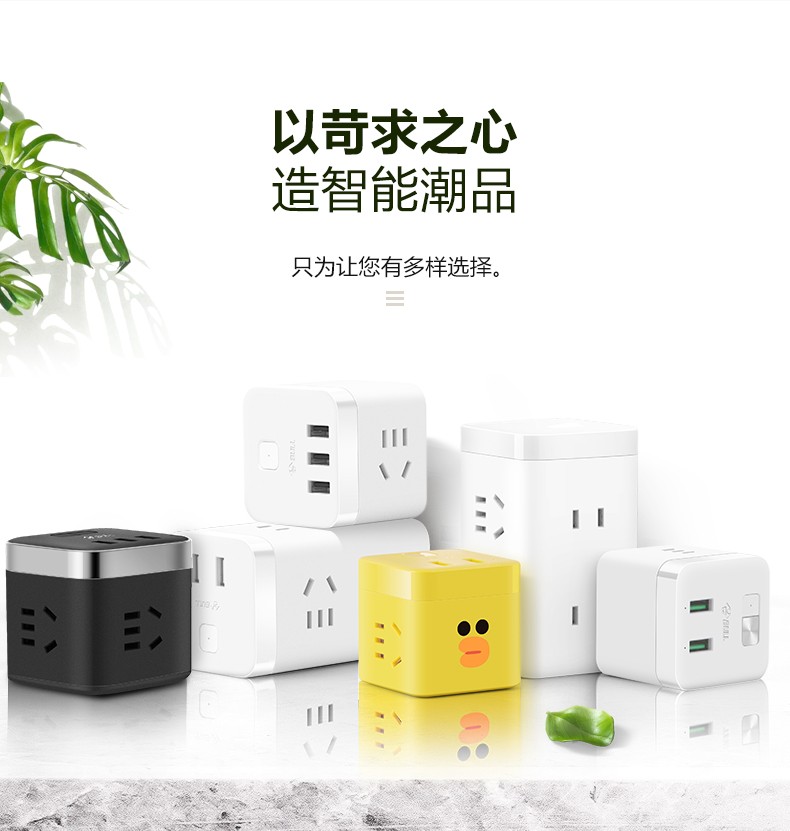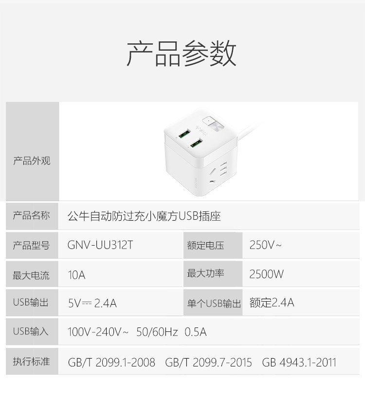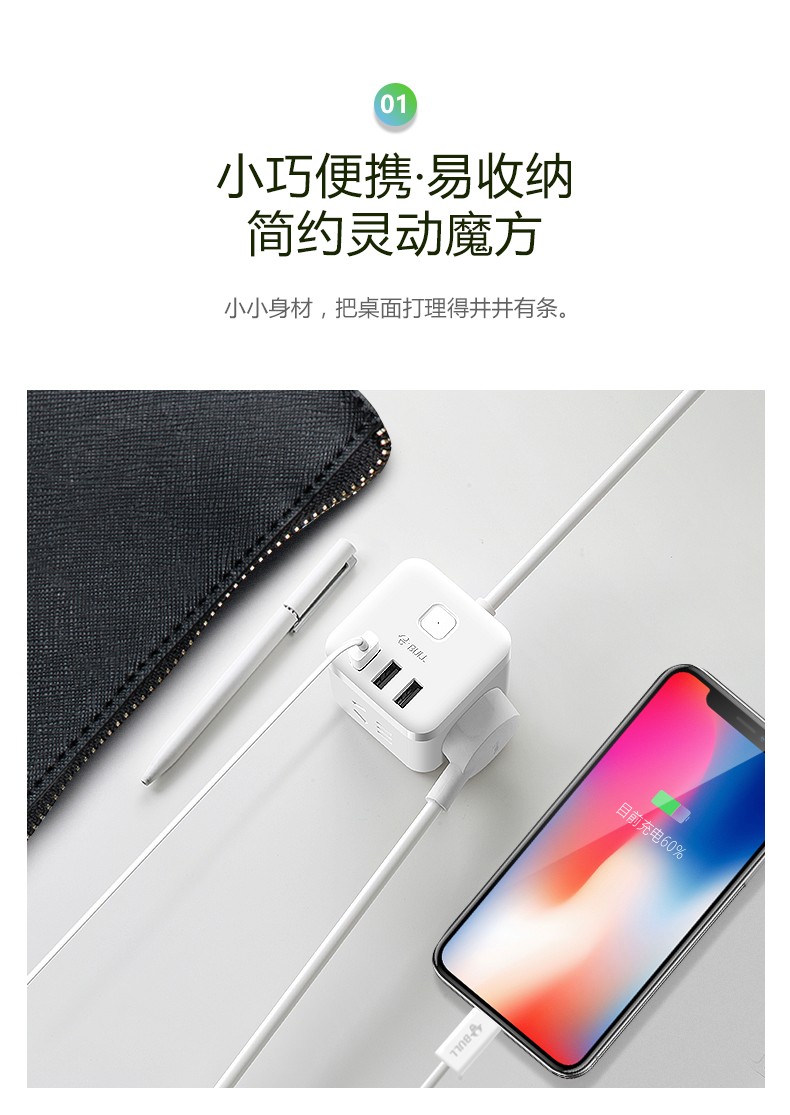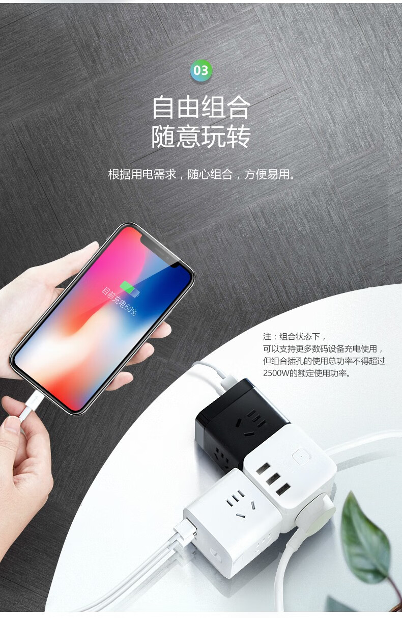 Bull (BULL) Wireless Rubik's Cube multifunctional USB charging conversion plug household plug strip white multi-hole socket square plug strip 2 holes + night light wireless