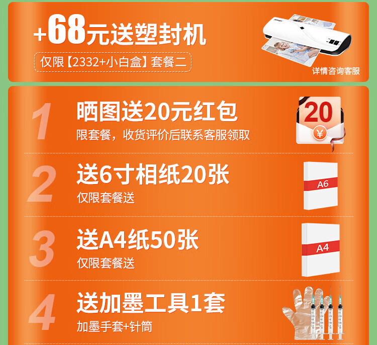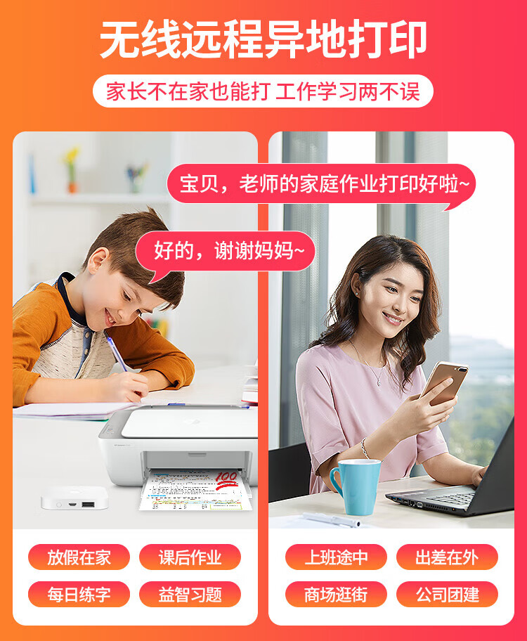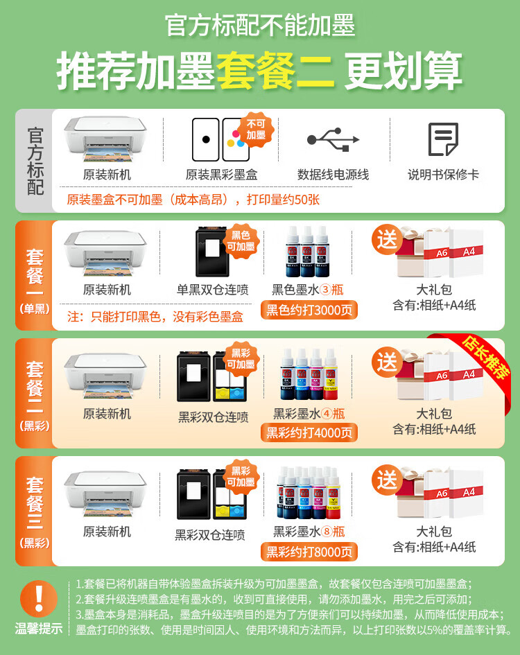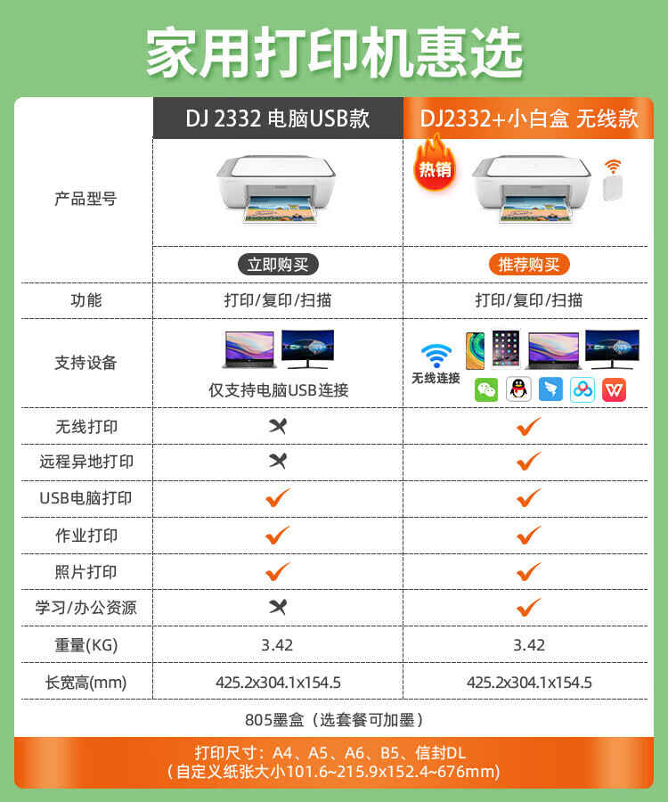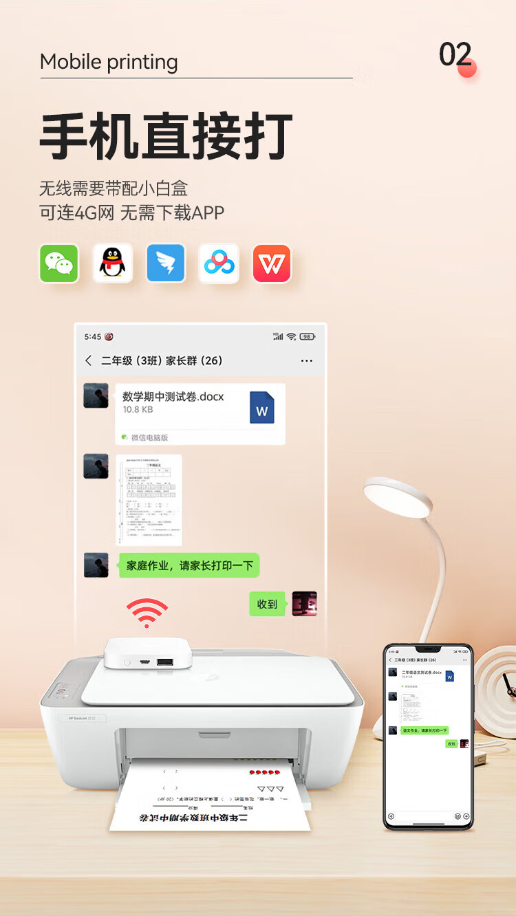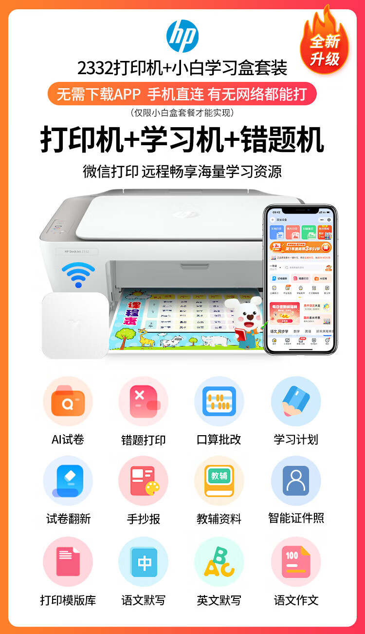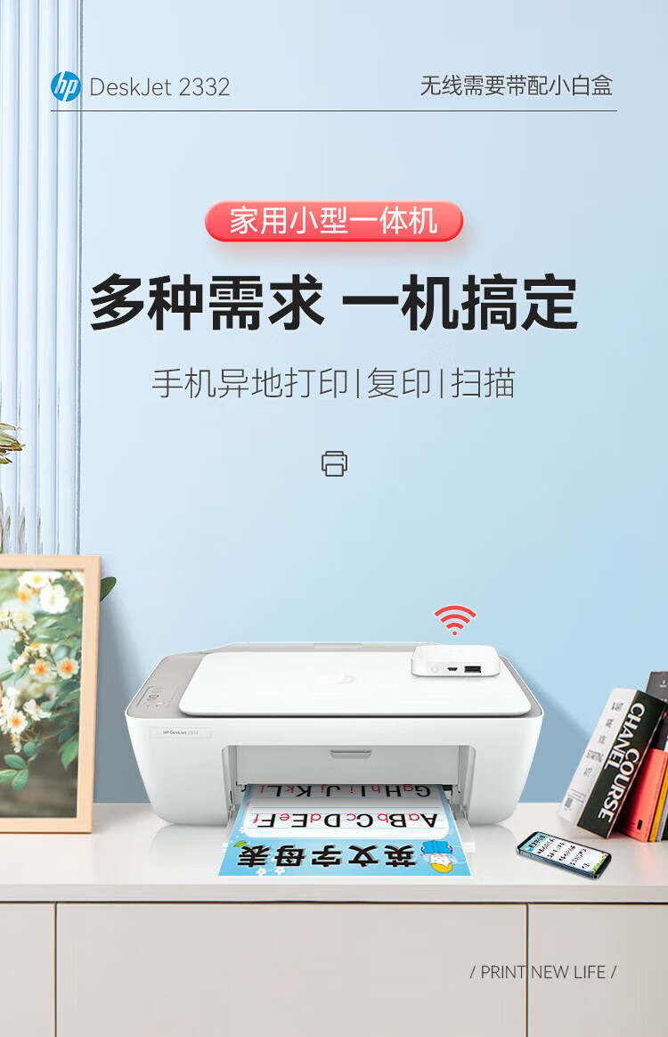 HP 2332 color printer home office copy and scan all-in-one inkjet mobile phone wireless connection small photo student paper homework A4 2332+ small white box mobile phone wireless + remote printing + USB connection package 2 (black + color refillable ink cartridge + 4 bottles of black color ink) recommended by the store manager