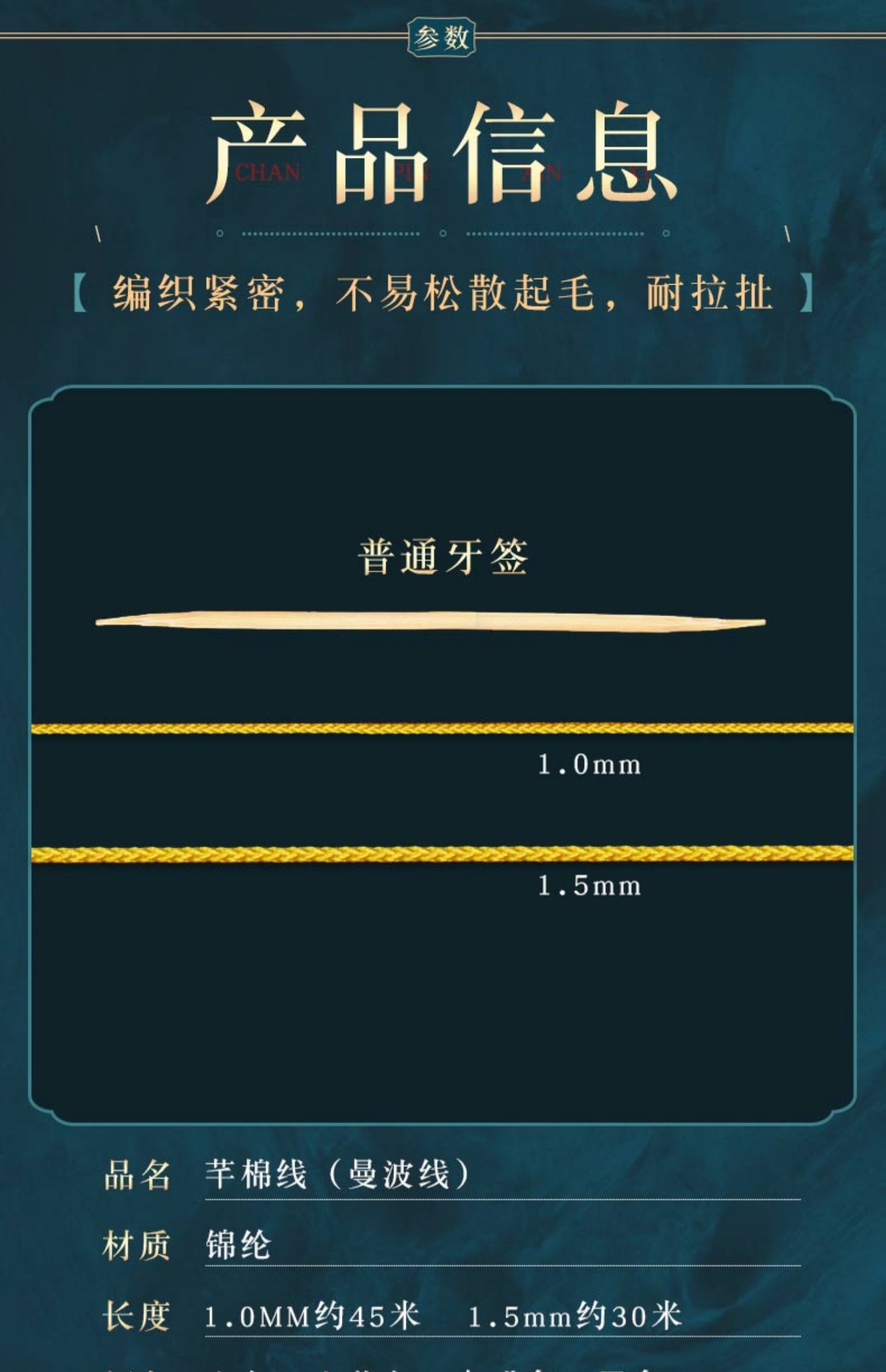 Luolan Meiwen's non-elastic bracelet string rope made of special braided jade thread and beads for Xingyue Bodhi Buddha beads, wear-resistant, gold 1.0MM, about 45 meters