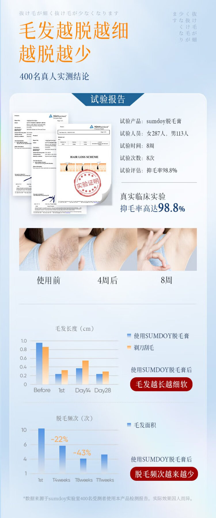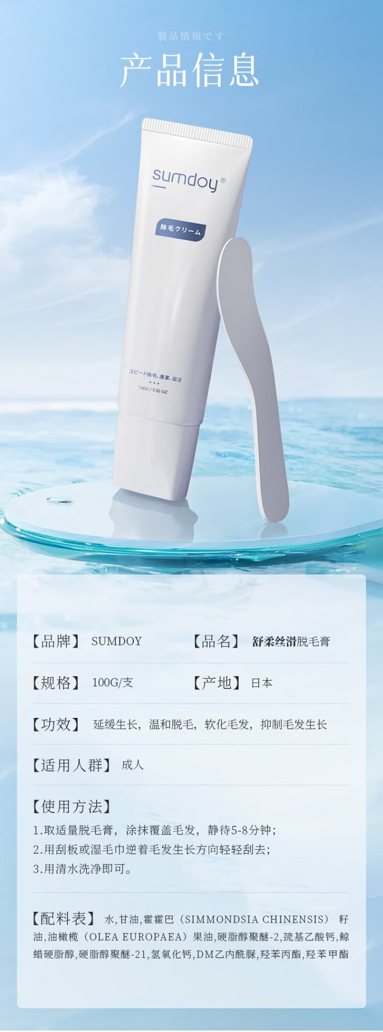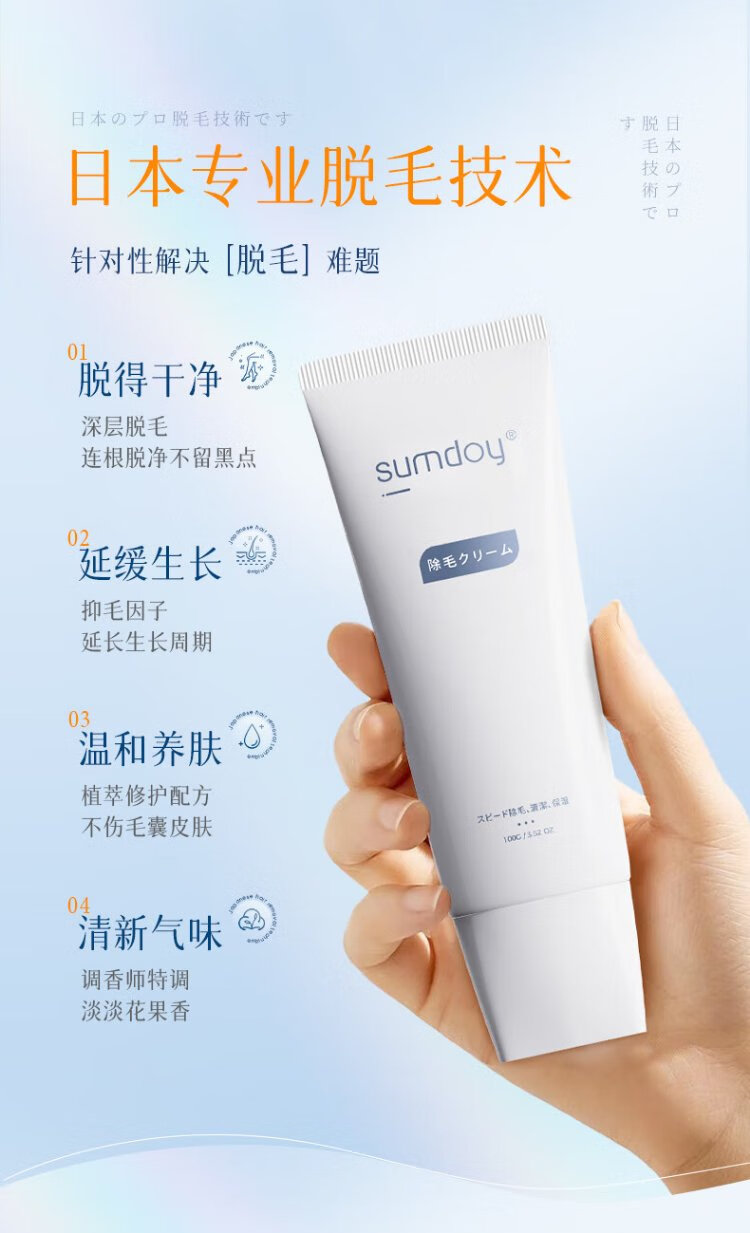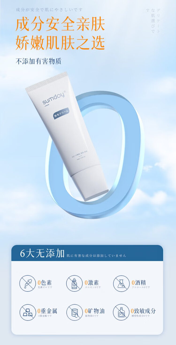 SUMDOY hair removal cream imported from Japan, private parts, men and women, non-facial, armpit hair removal, body hair removal, no black spots on hair roots, save 39 yuan, hair removal cream 100g*2