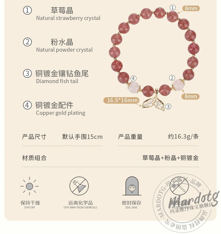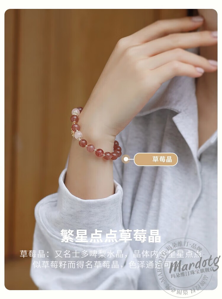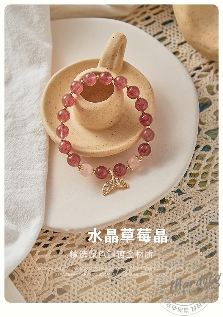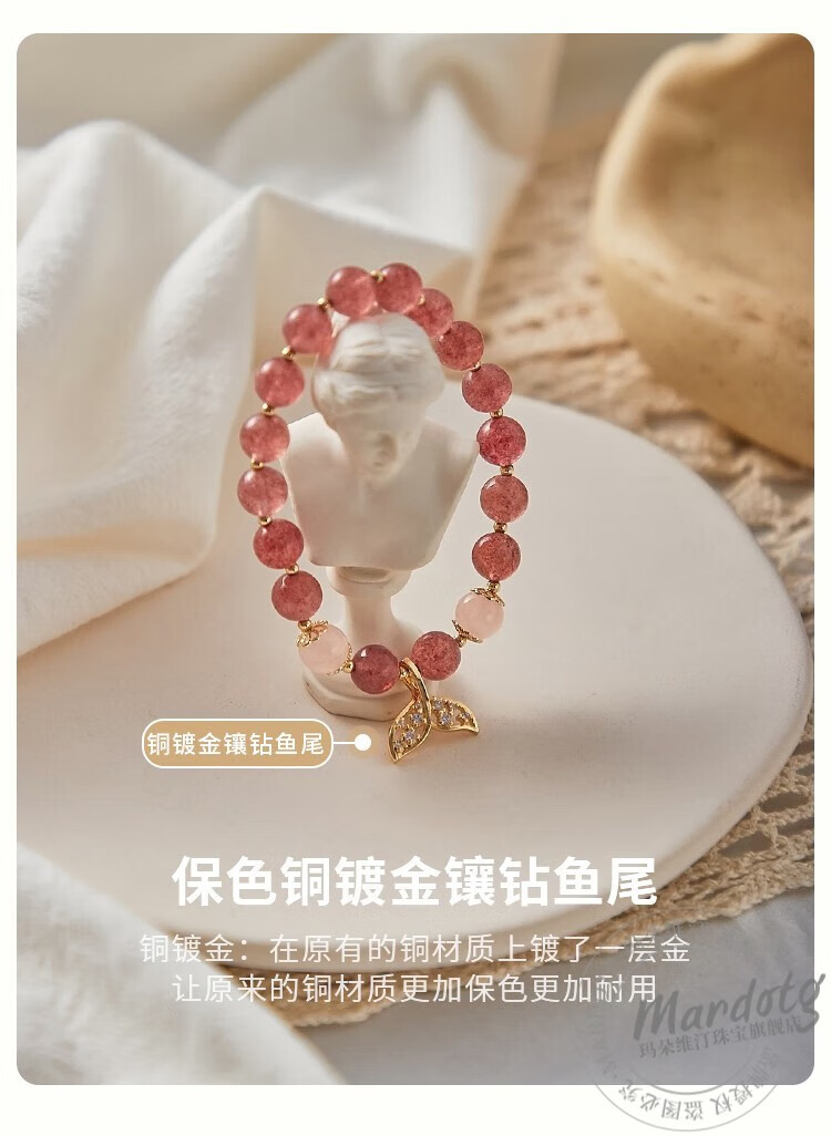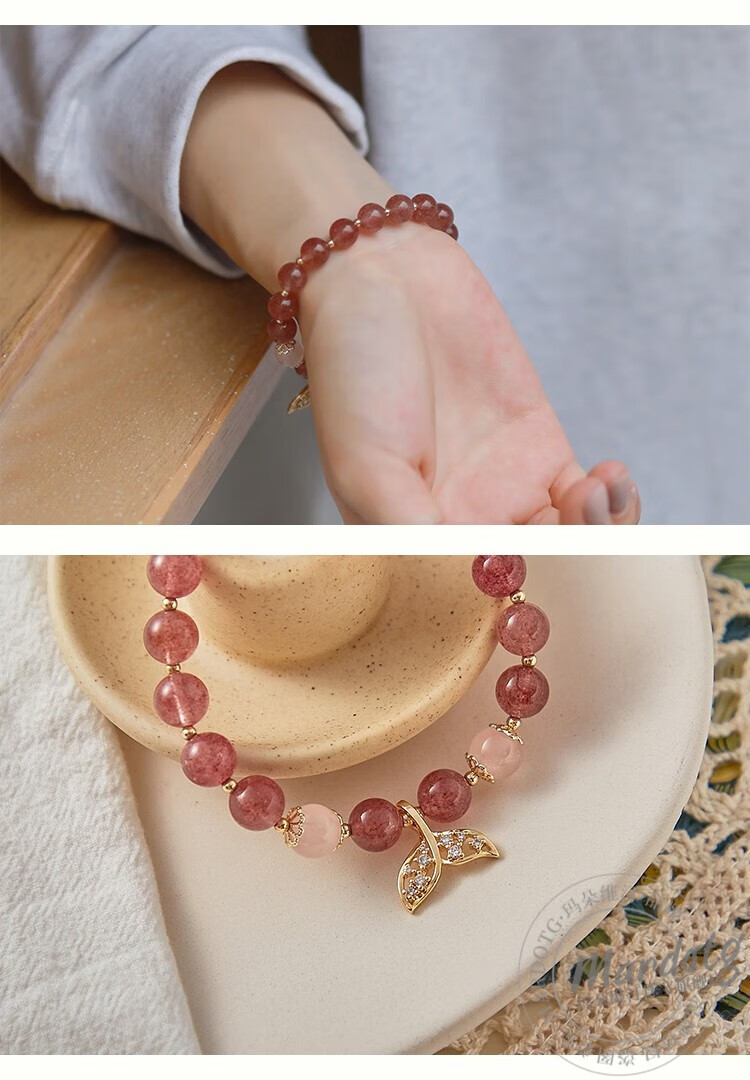 MARDOTG Strawberry Crystal Bracelet Women's Fishtail Pink Crystal Bracelet Jewelry Gift Gift 13-14cm Hand Circumference