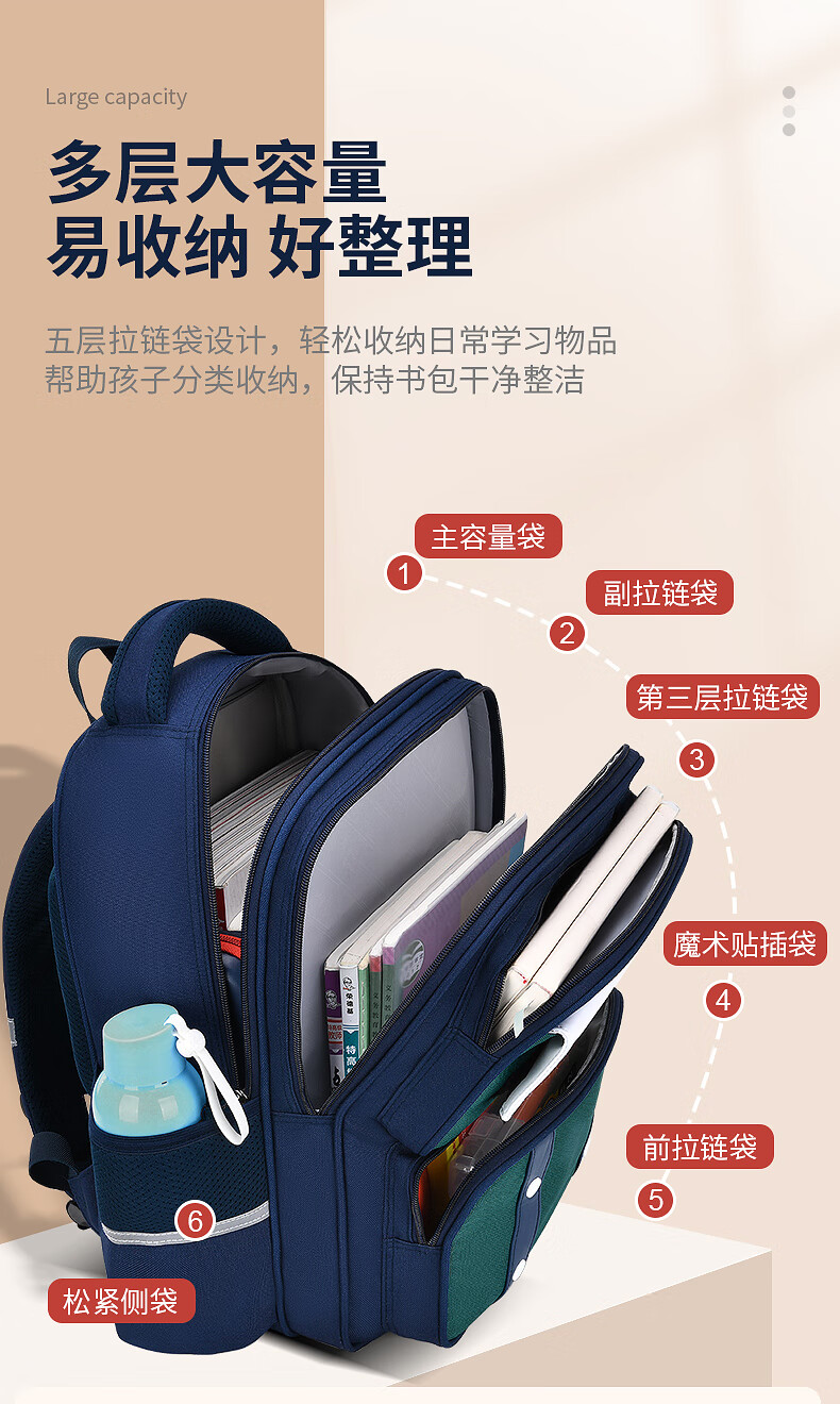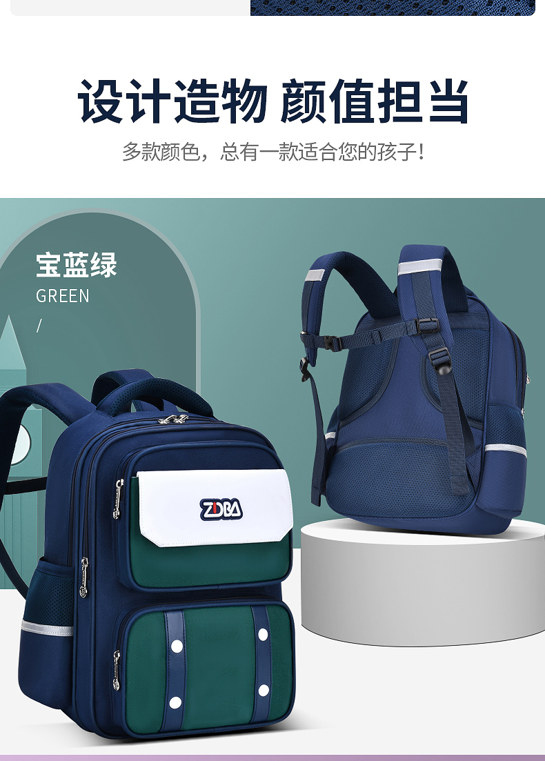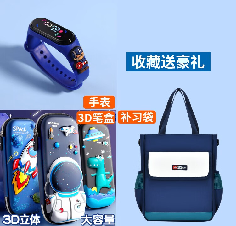 DR Mickey's 2025 new school bag for primary school students in grades 1, 2, 3 to 6, lightweight, large-capacity waterproof children's backpack, large sapphire blue and green (鎹 3D pencil case + watch) No Specifications