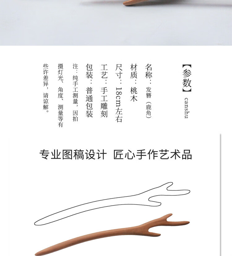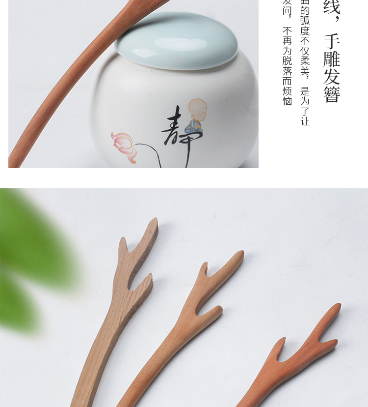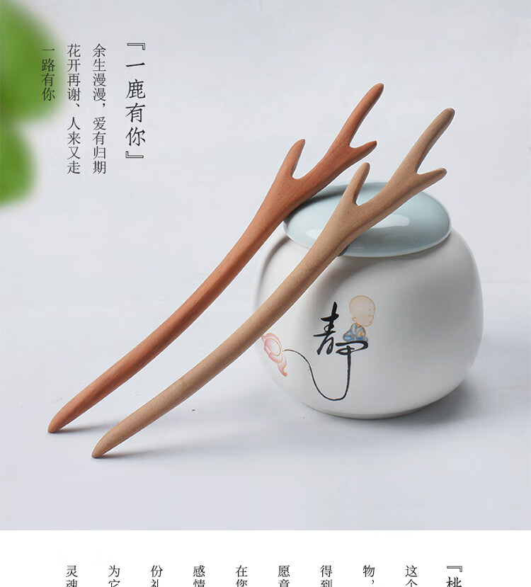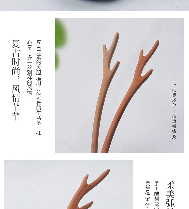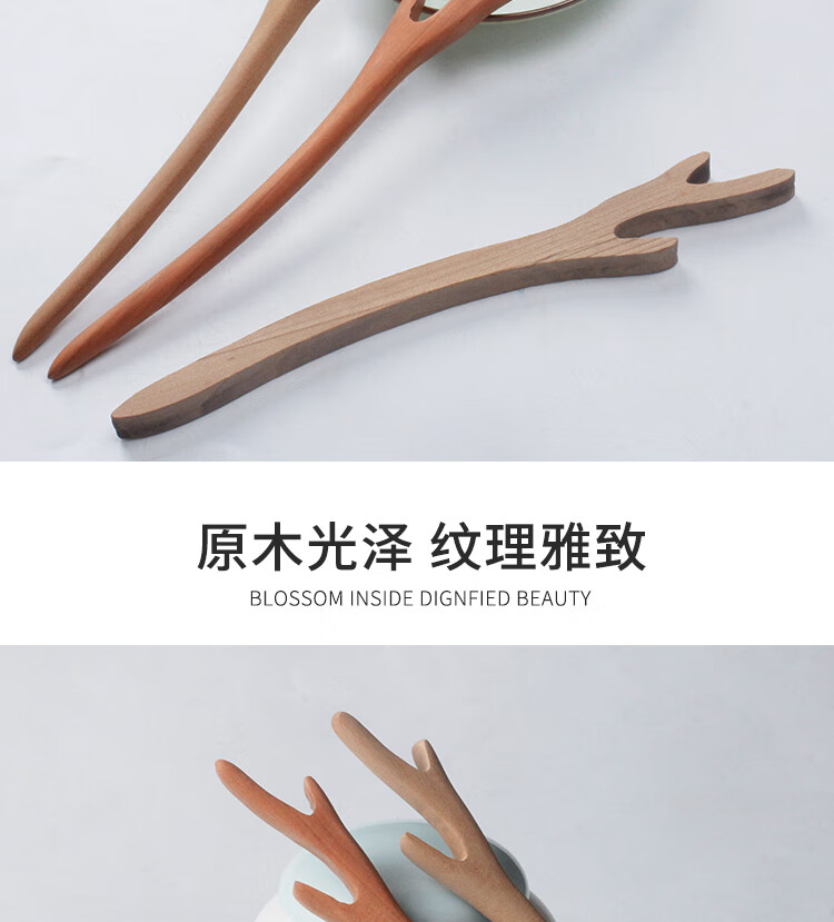 Hairpin Peachwood Handmade Hairpin Ancient Style Daily Hairpin Simple Wooden Semi-finished Wooden Hairpin Ethnic Style Hair Accessories Peachwood Hairpin Antlers