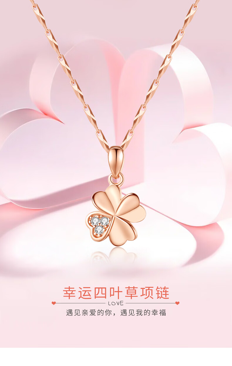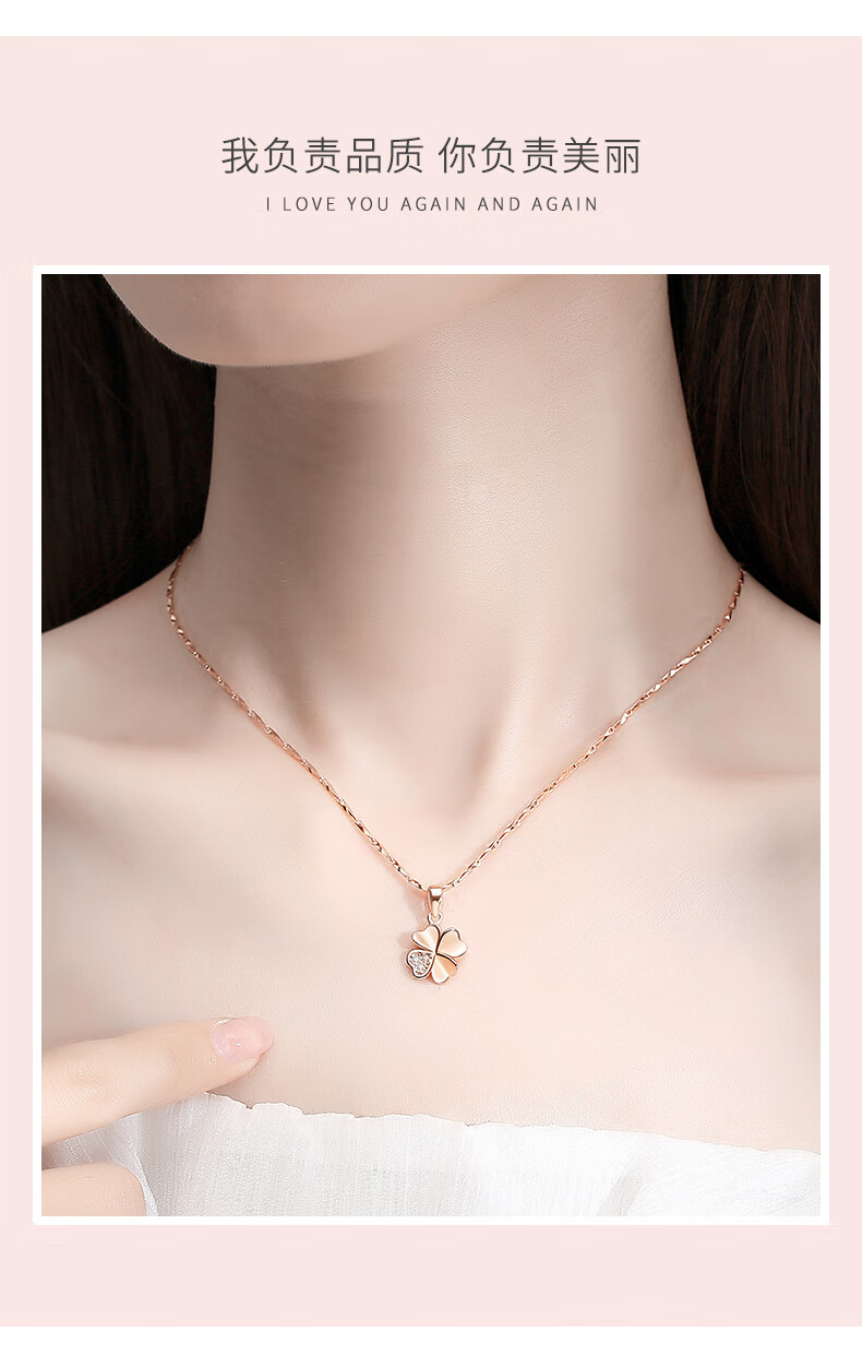 Ji Sifan light luxury necklace women's four-leaf clover high-end pendant jewelry Valentine's Day birthday gift for girlfriend and wife, rose gold, Jingcang straight hair next day delivery