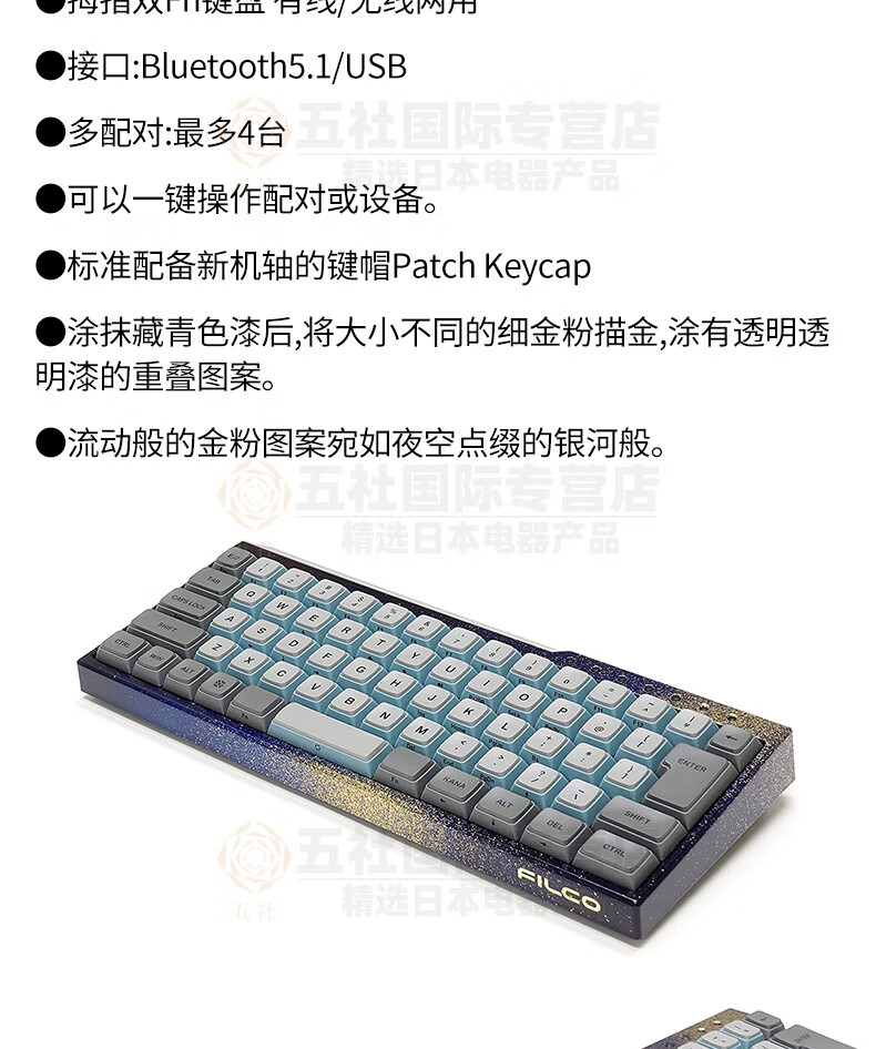 Filco JD Logistics Japan Direct Mail FILCO Galaxy Gold Lacquer Mechanical Keyboard Japanese Arrangement 66 Keys KOBO-GXG08 Red Axis Matte Black Keycaps