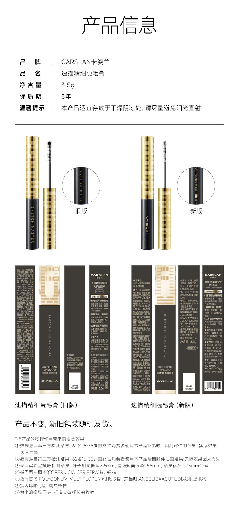Carslan Mascara Growth Primer Waterproof, Styling, Long-lasting Curl, Slim, Thick, Non-smudged Sunflower Roots, Fine and Long Quick Drawing Mascara - Black