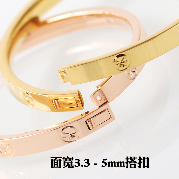 Junhong 18K rose gold plain gold rice-shaped pattern, fashionable and versatile royal concubine bracelet, oval glossy Valentine's Day 18K rose gold 3.3mm16#6g 54