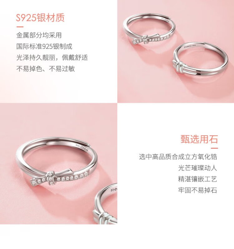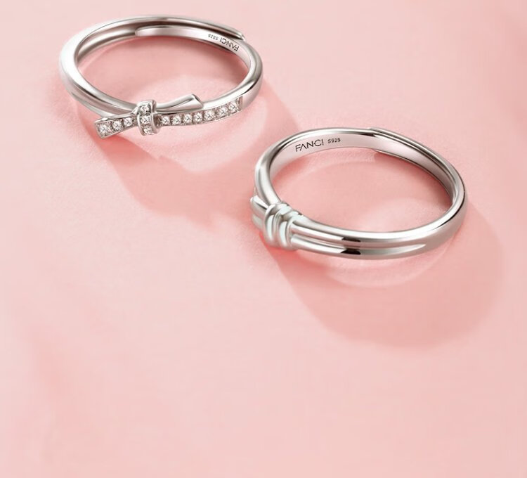 Fanci (Fanci) Simple Love Couple Ring Ring with Bow Adjustable Birthday Confession Gift for Girlfriend Simple Love Couple Ring