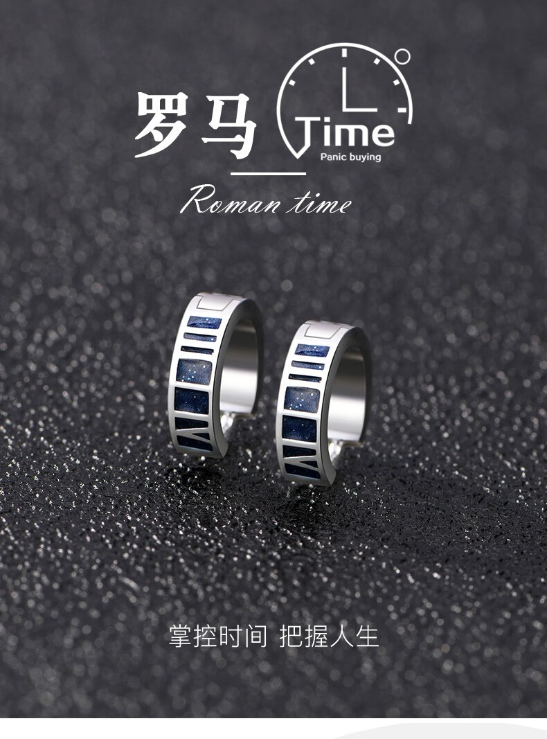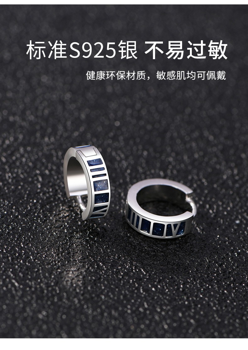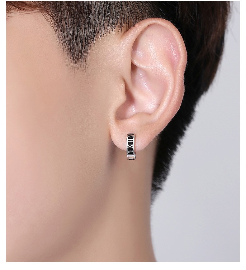 Crystal earrings for men, S925 silver earrings, earrings, Roman numeral earrings, single and double ear jewelry, birthday gifts for boyfriend, black Roman numerals, 925 silver, one pair